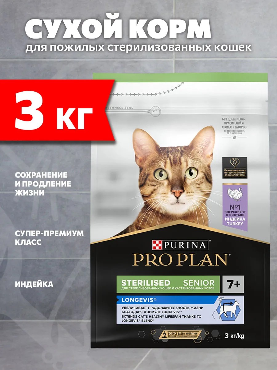 Сухой корм для стерилизованных кошек и кастрированных котов старше 7 лет Pro Plan Sterilised Longevis (Формула Longevis для увеличения продолжительности жизни) — это полюбившийся Pro Plan Sterilised Senior с прежним составом и качеством .
