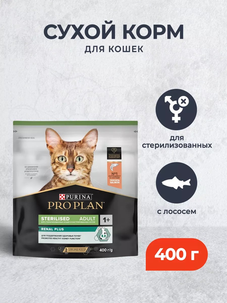 Корм сухой для кошек PRO PLAN Sterilised RENAL PLUS (Поддержание здоровья почек) - это полюбившийся PRO PLAN Sterilised OptiRenal с новым названием, но с прежним составом и качеством.