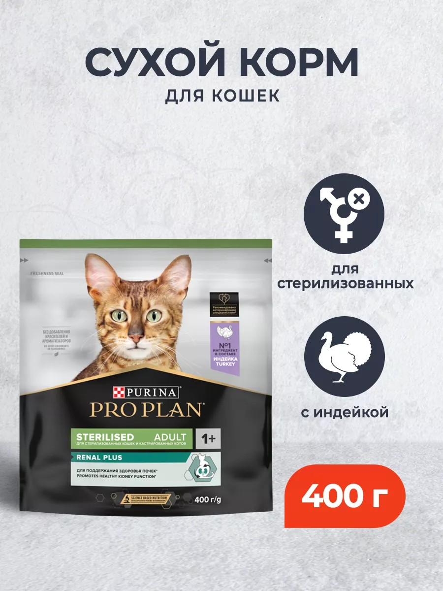 Корм сухой для кошек PRO PLAN Sterilised RENAL PLUS (Поддержание здоровья почек) - это полюбившийся PRO PLAN Sterilised OptiRenal с новым названием, но с прежним составом и качеством.