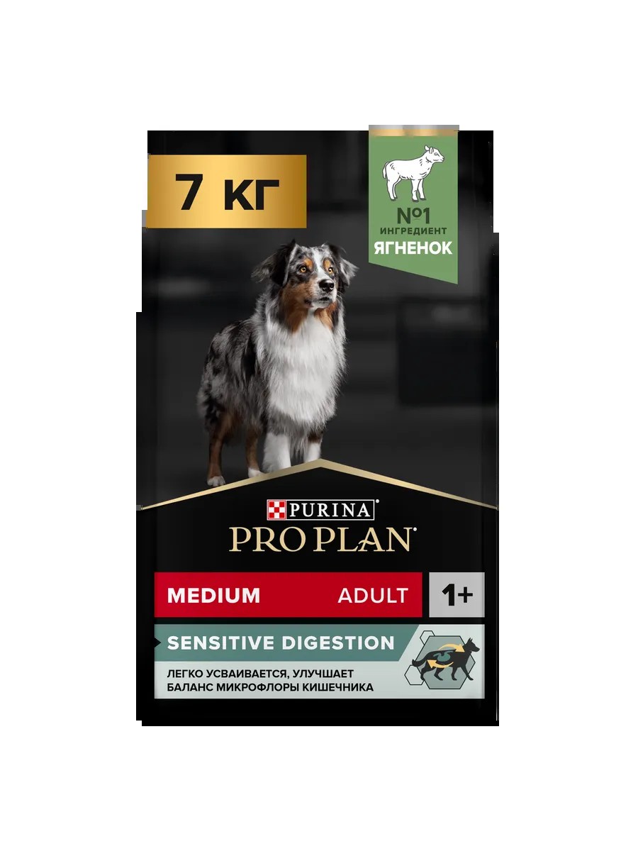 Изучая потребности собак на протяжении многих лет, команда квалифицированных ветеринарных специалистов и диетологов PURINA разработала сухой корм PRO PLAN Sensitive digestion (для чувствительного пищеварения) — ежедневный рацион с высоким содержанием ягненка для взрослых собак средних пород. Этот полнорационный корм сбалансирован по составу и помогает поддержать здоровое пищеварение.