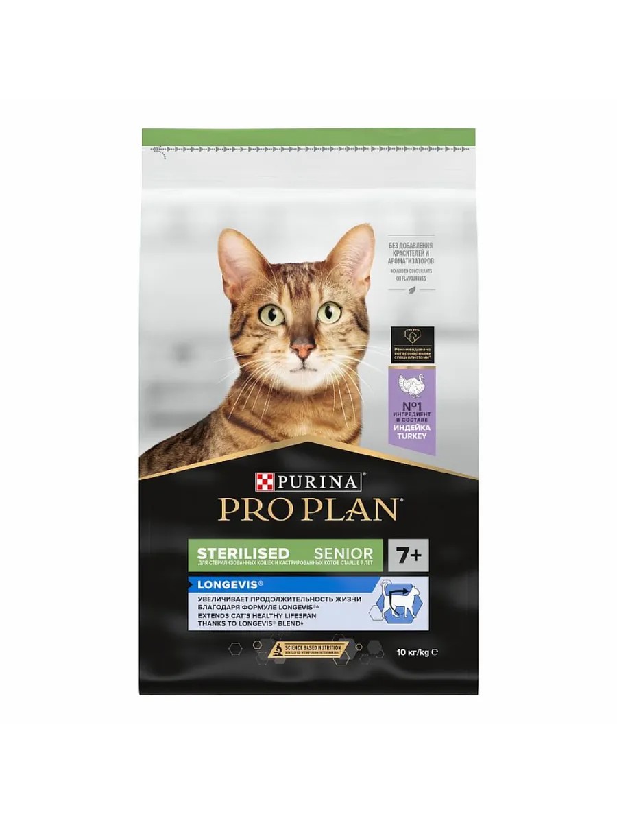 PRO PLAN Корм для пожилых стерилизованных кошек индейка, 10 кг