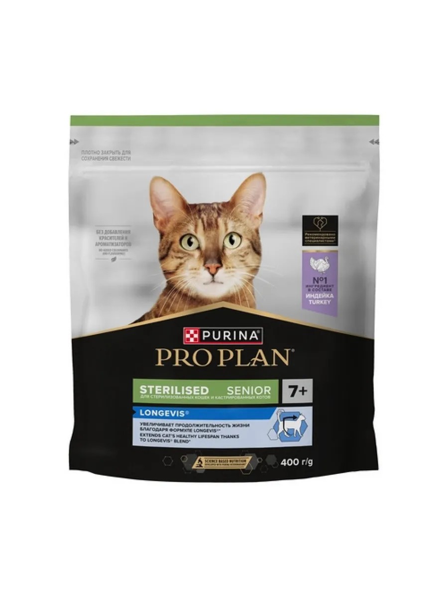 PRO PLAN Корм для пожилых стерилизованных кошек индейка, 400 г