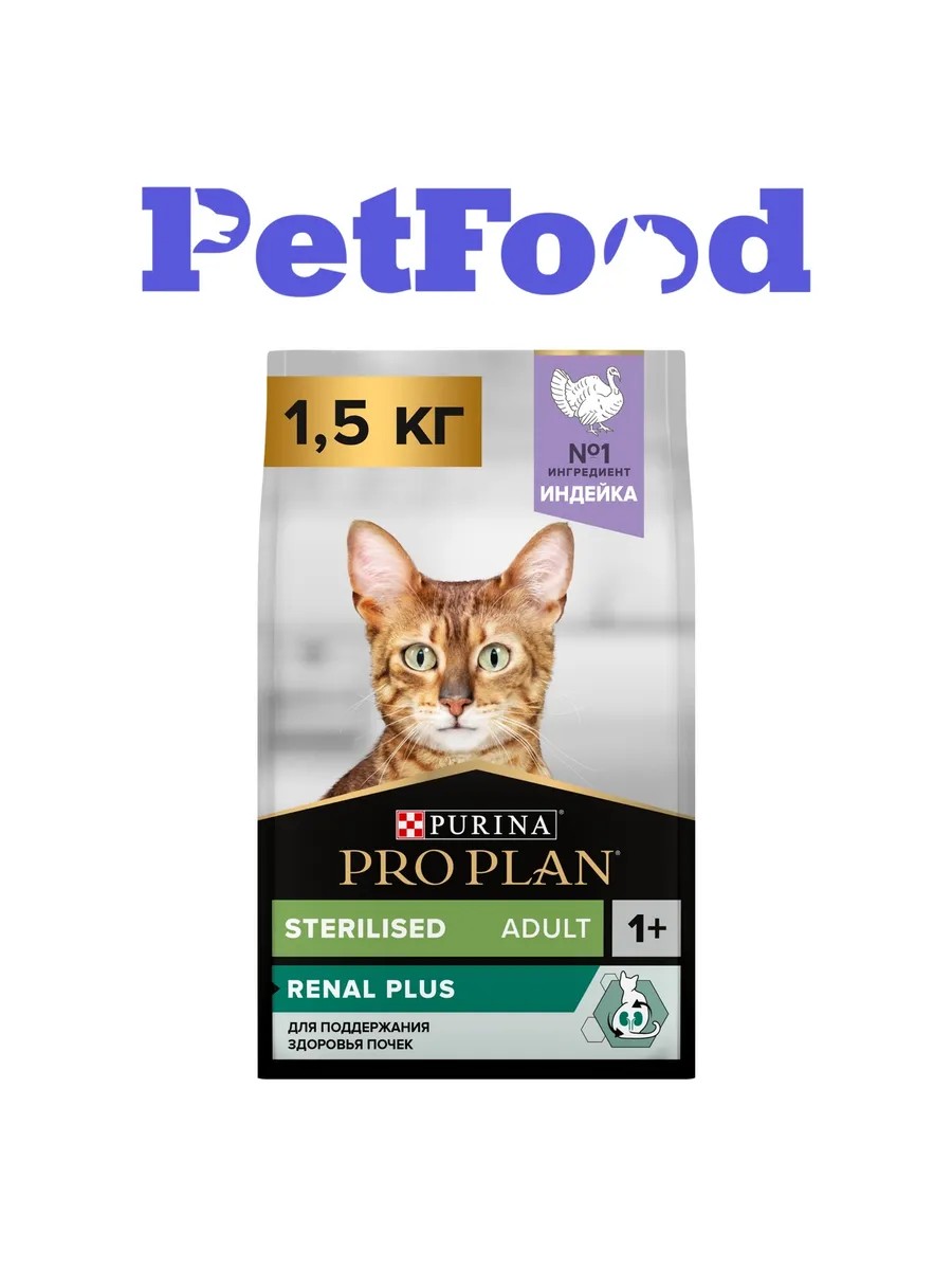 PRO PLAN Корм для стерилизованных кошек, здоровье почек индейка 1,5кг
