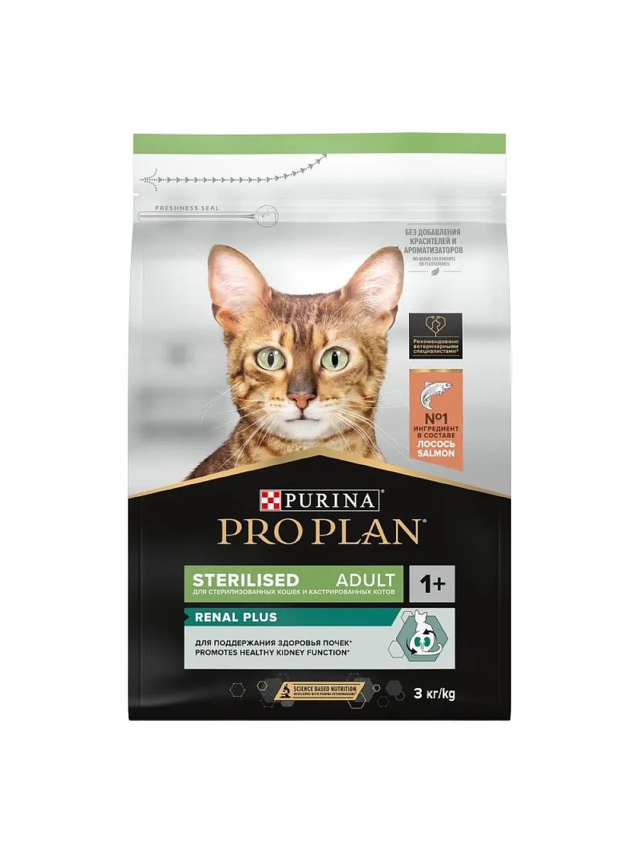 PRO PLAN STERILISED / Сухой корм ПРО ПЛАН для взрослых кошек для поддержания здоровья почек после стерилизации с лососем