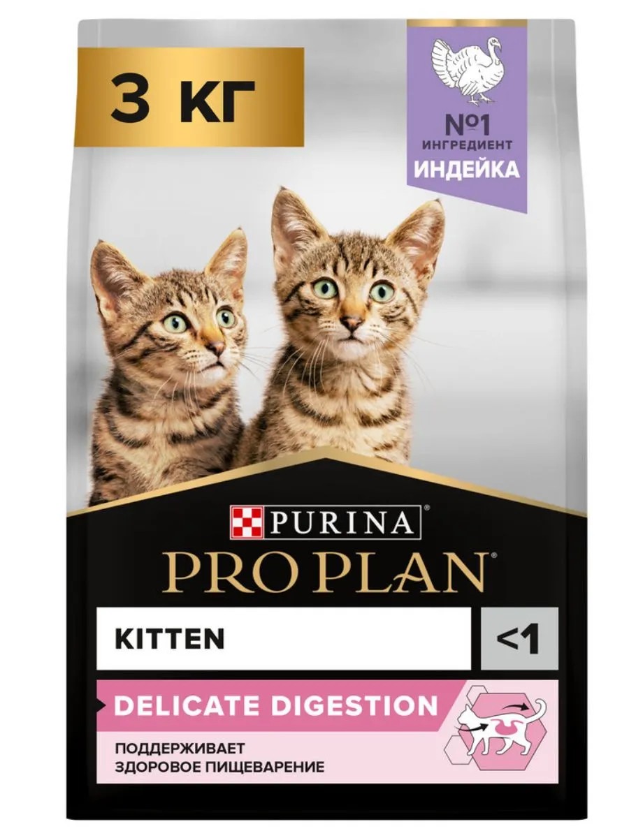 Сухой полнорационный корм Pro Plan DELICATE DIGESTION для котят до 1 года с чувствительным пищеварением, с высоким содержанием индейки, 3 кг.
