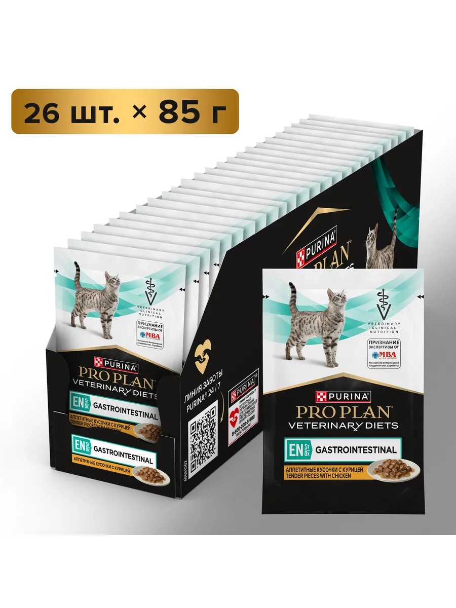 Влажный корм для котят и взрослых кошек диетический PRO PLAN VETERINARY DIETS EN ST/OX Gastrointestinal при расстройствах пищеварения, с курицей