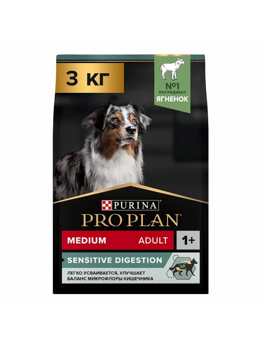 PRO PLAN Корм для собак средних пород чувствительный ЖКТ ягненок, 3кг