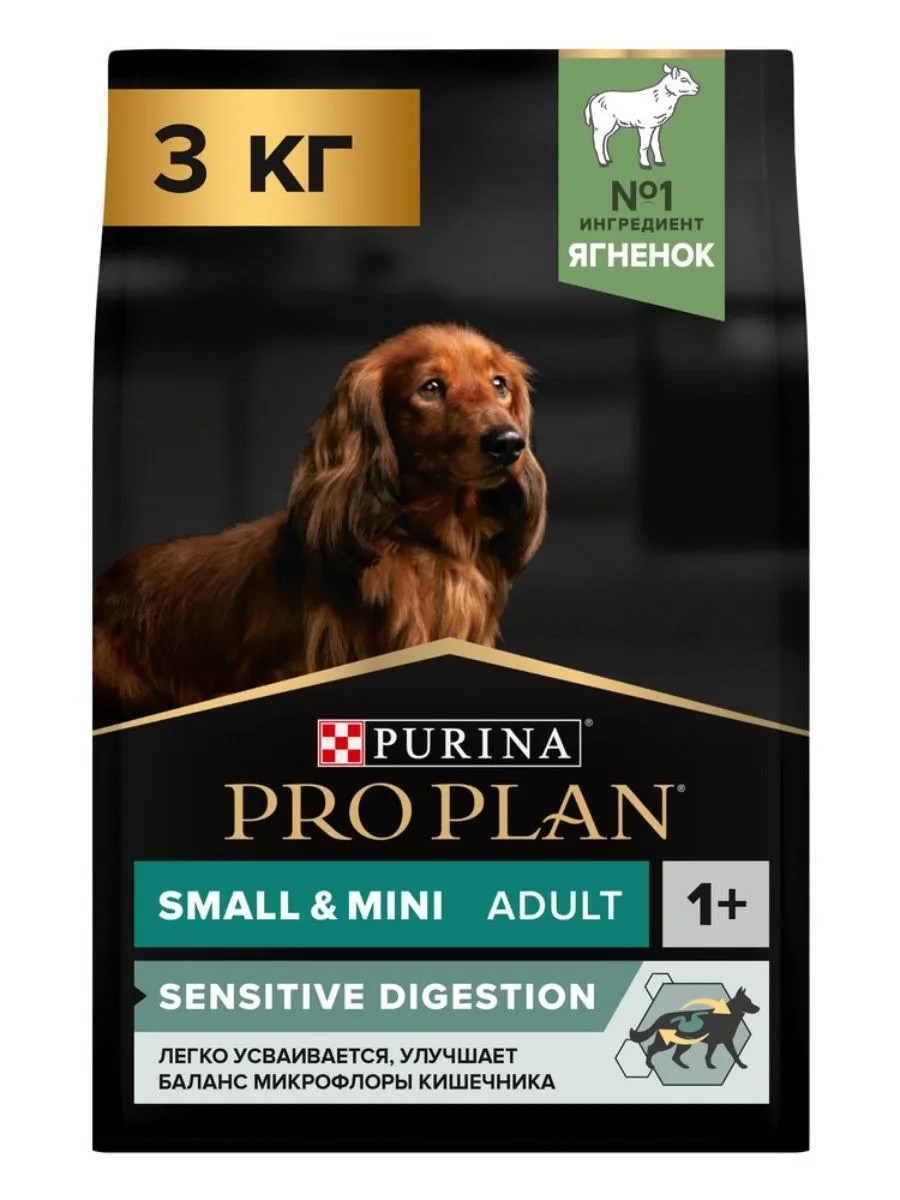 Изучая потребности собак на протяжении многих лет, команда ветеринарных специалистов и диетологов PURINA разработала сухой корм PRO PLAN Sensitive digestion (для чувствительного пищеварения) — рацион с высоким содержанием ягненка для взрослых собак мелких и карликовых пород.