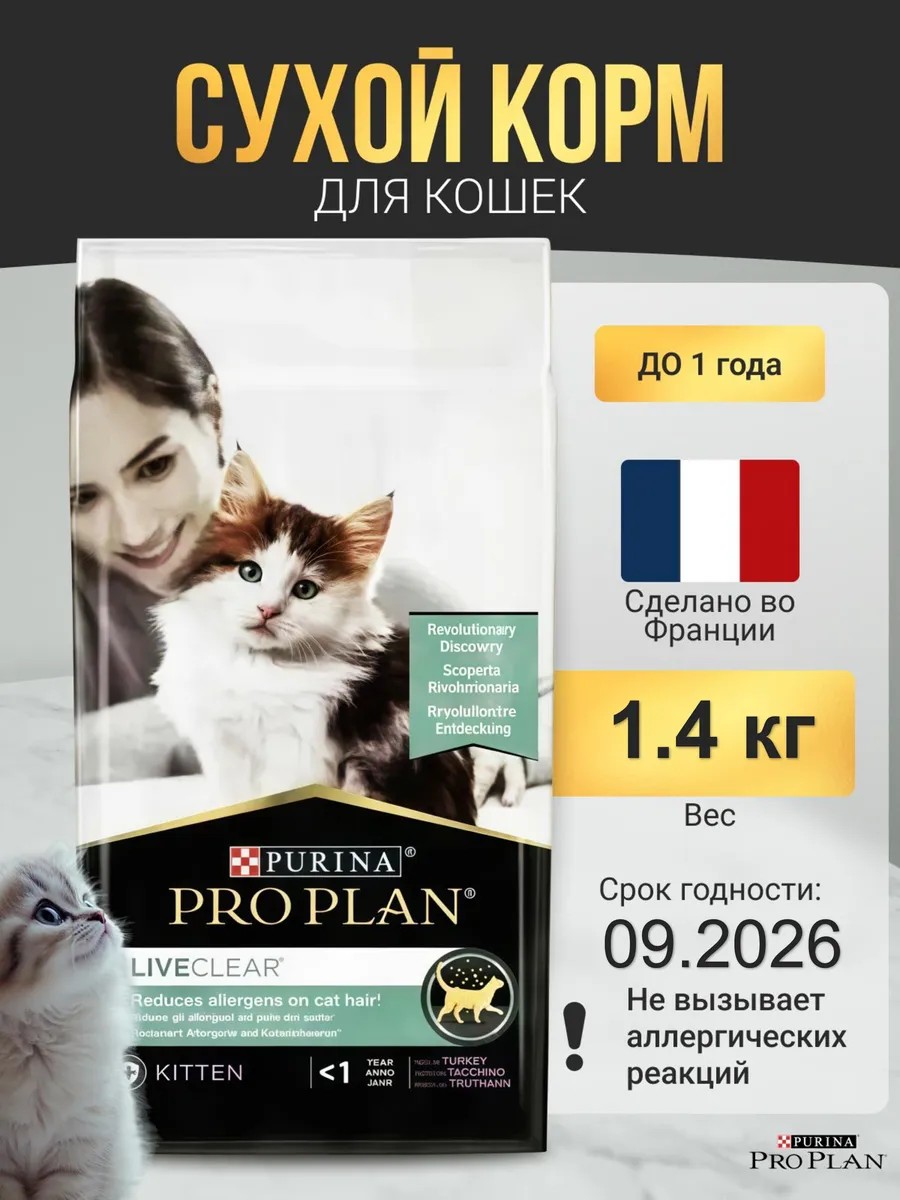 Purina Live Clear Сухой корм для котят 1.4 кг индейка