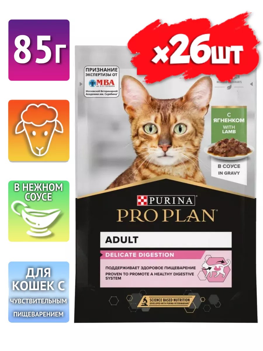Влажный кошачий корм Пурина Проплан Деликат Pro Plan Delicate при чувствительном пищеварении с ягненком 85 г х 26 шт.