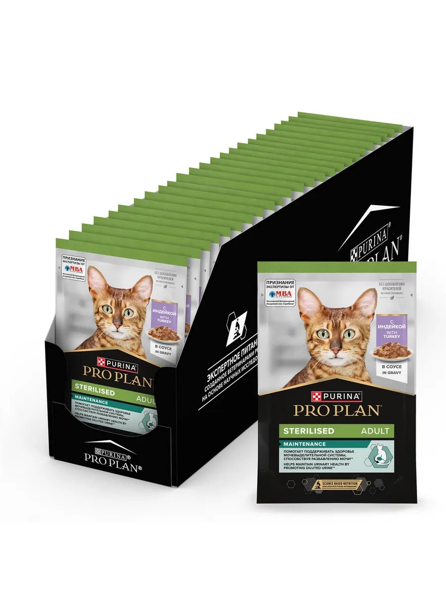 PRO PLAN Паучи для стерилизованных кошек индейка в соусе 85г х 26шт
