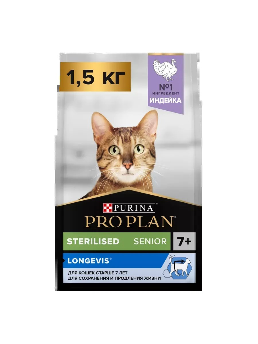 Сухой корм PRO PLAN STERILISED LONGEVIS для кошек старше 7 лет с чувствительным пищеварением, с высоким содержанием индейки, 1,5 кг. Создавая сухой корм для кошек старше семи лет, эксперты PRO PLAN позаботились об особых потребностях пожилых питомцев с чувствительным пищеварением, добавив специальный комплекс микронутриентов для продления жизни