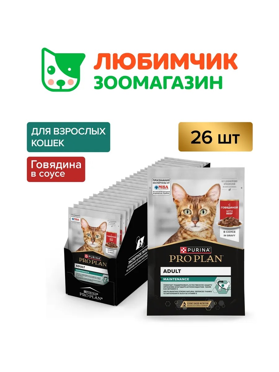 Команда квалифицированных ветеринарных специалистов разработала влажный корм для кошек PRO PLAN MAINTENANCE с говядиной. Этот полнорационный корм для кошек содержит комплекс питательных веществ, витаминов и минералов, необходимых для нормального функционирования организма взрослых питомцев.