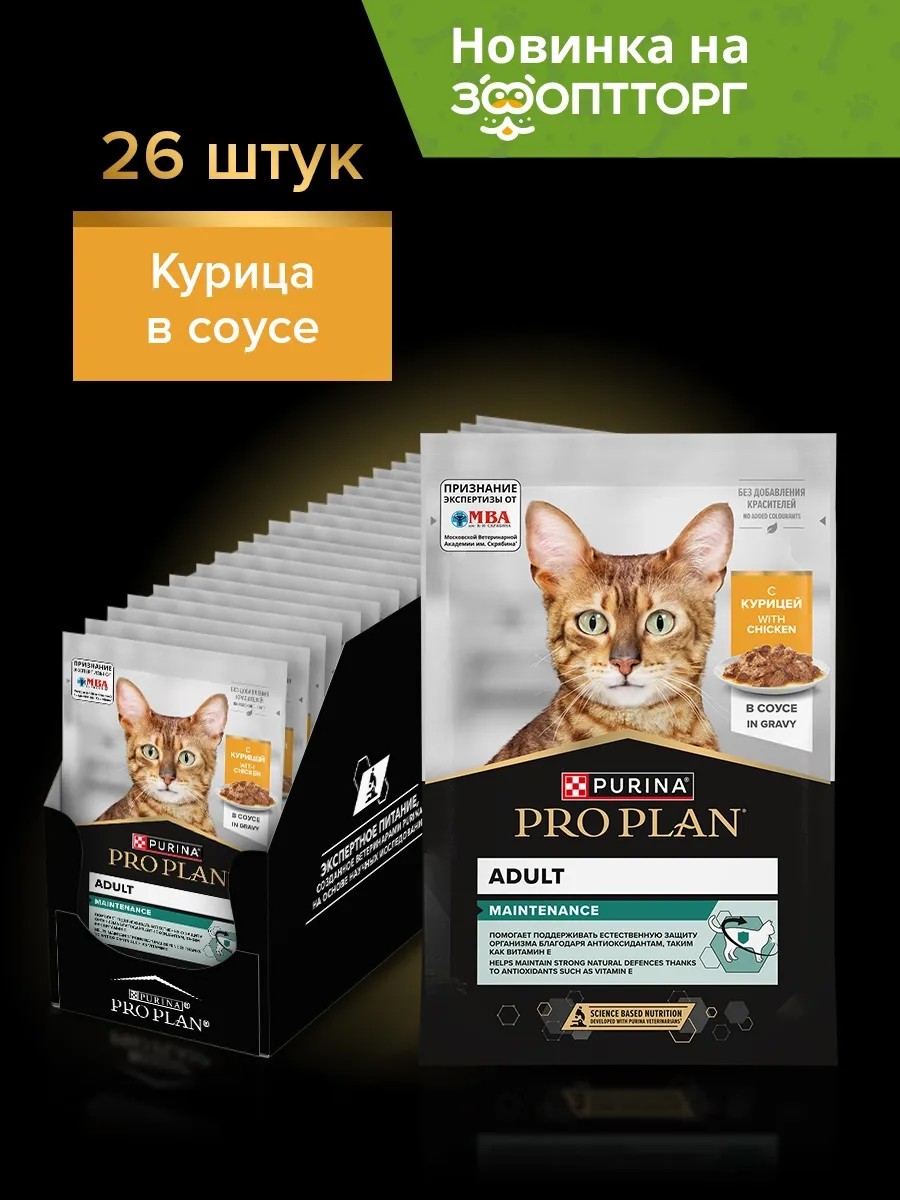 PRO PLAN Влажный корм для взрослых кошек Курица, 85 г х 26 шт