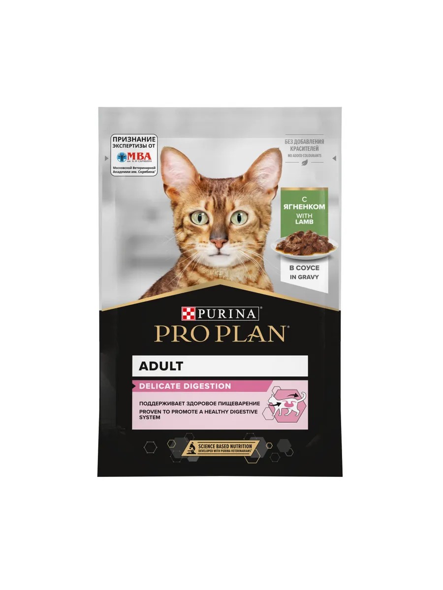 PRO PLAN DELICATE / Влажный корм Паучи ПРО ПЛАН для взрослых кошек при чувствительном пищеварении с ягненком в соусе (цена за упаковку)