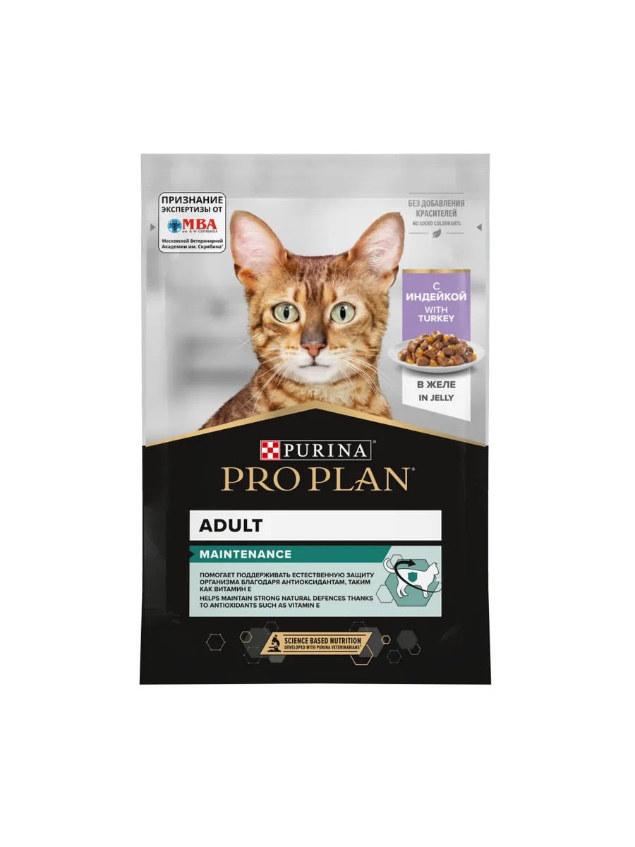 PRO PLAN ADULT / Влажный корм Паучи ПРО ПЛАН для взрослых кошек с индейкой в желе (цена за упаковку)