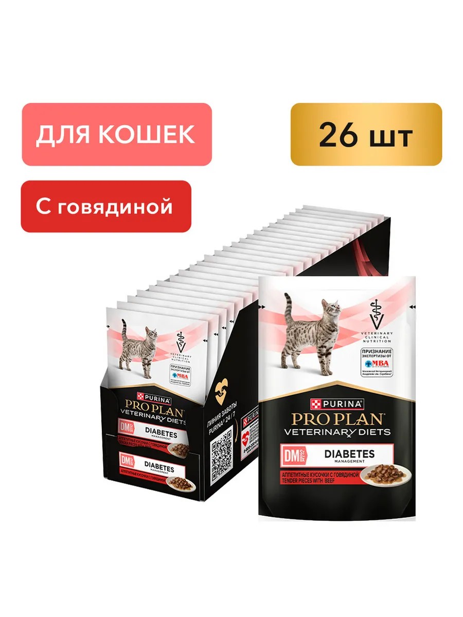 | Full name of product | Pro Plan wet food for kittens and adult cats, for diabetes, with beef (26 pcs. per pack) 85 g |