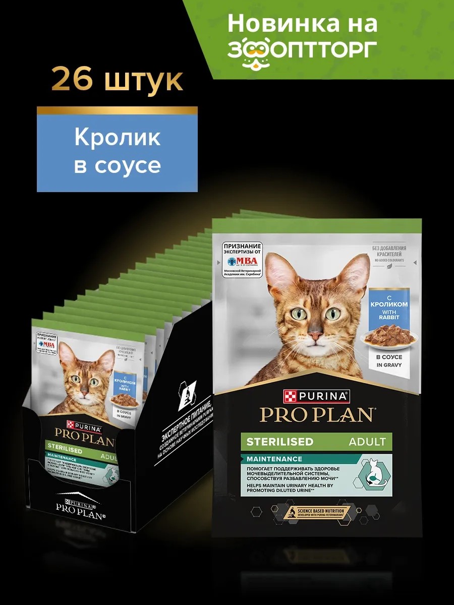 PRO PLAN Влажный корм для стерилизованных кошек Кролик, 85 г х 26 шт