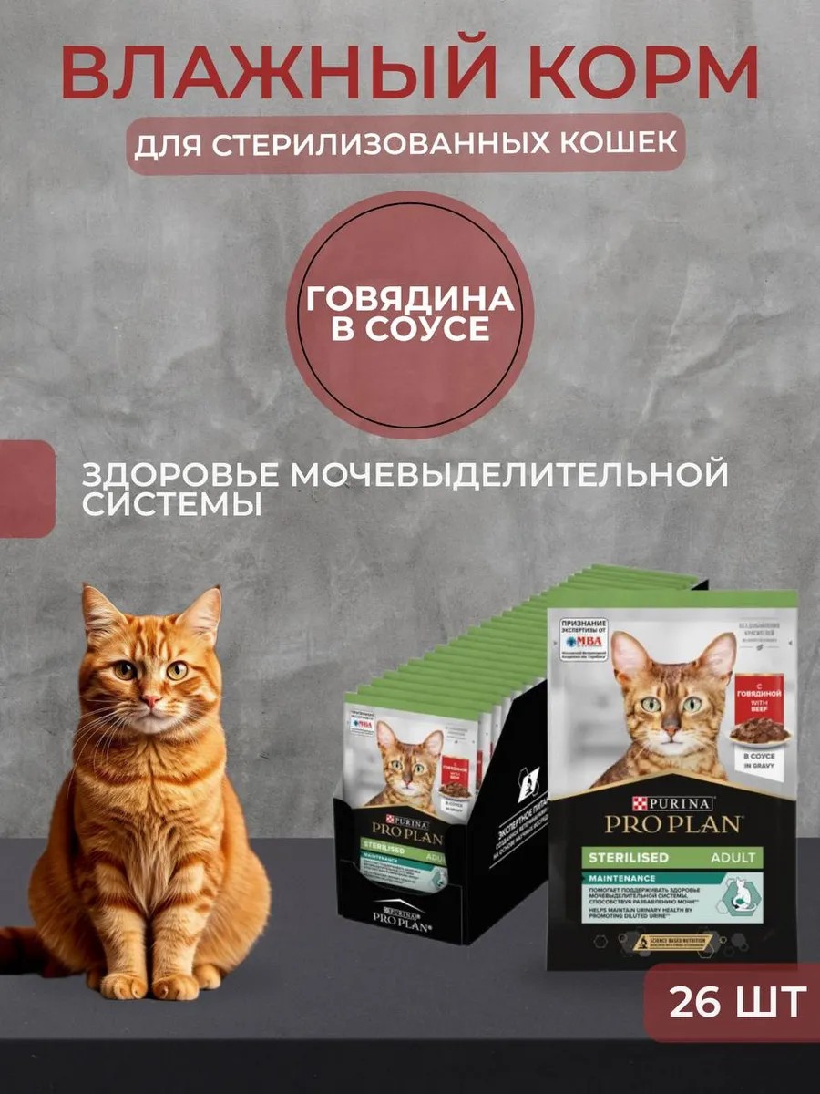 PRO PLAN Влажный корм стерилизованным, говядина в соусе, 85г х 26шт