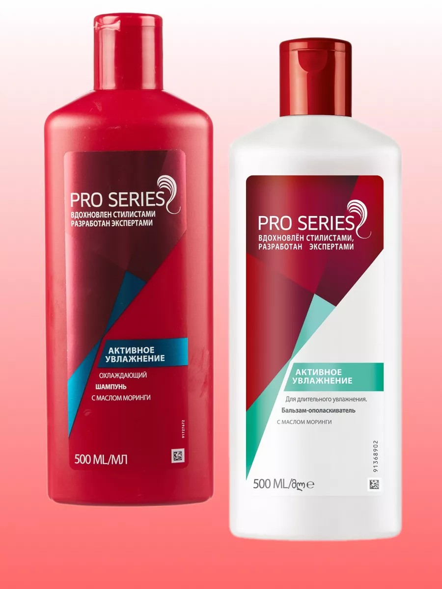 Набор для волос: шампунь 500 мл+бальзам 500 мл. Коллекция Pro Series "Активное увлажнение" с маслом моринги была вдохновлена салонными средствами для глубокого увлажнения. Шампунь "Активное увлажнение" очищает волосы и подготавливает к увлажнению. Увлажняющий уход для мягкости и гладкости волос.