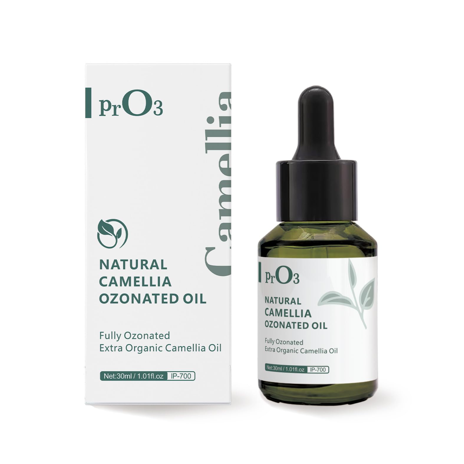 PrO3 NATURAL CAMELLIA OZONATED OIL Ingredients:100 pure ozonated camellia oil. Suggested Use: Apply two or more drops on the area 2 or 3 times a day. Storage: Store below 77 F 25 C for long-term storage, keep refrigerated. Safety Information:For skin use only. Avoid contact with the eyes. Our expertly formulated organic natural olive oil harnesses the power of ozone and then releases it into the tissue for long-term nourish and protect. PrO3's ozonated oil is safe and effective.