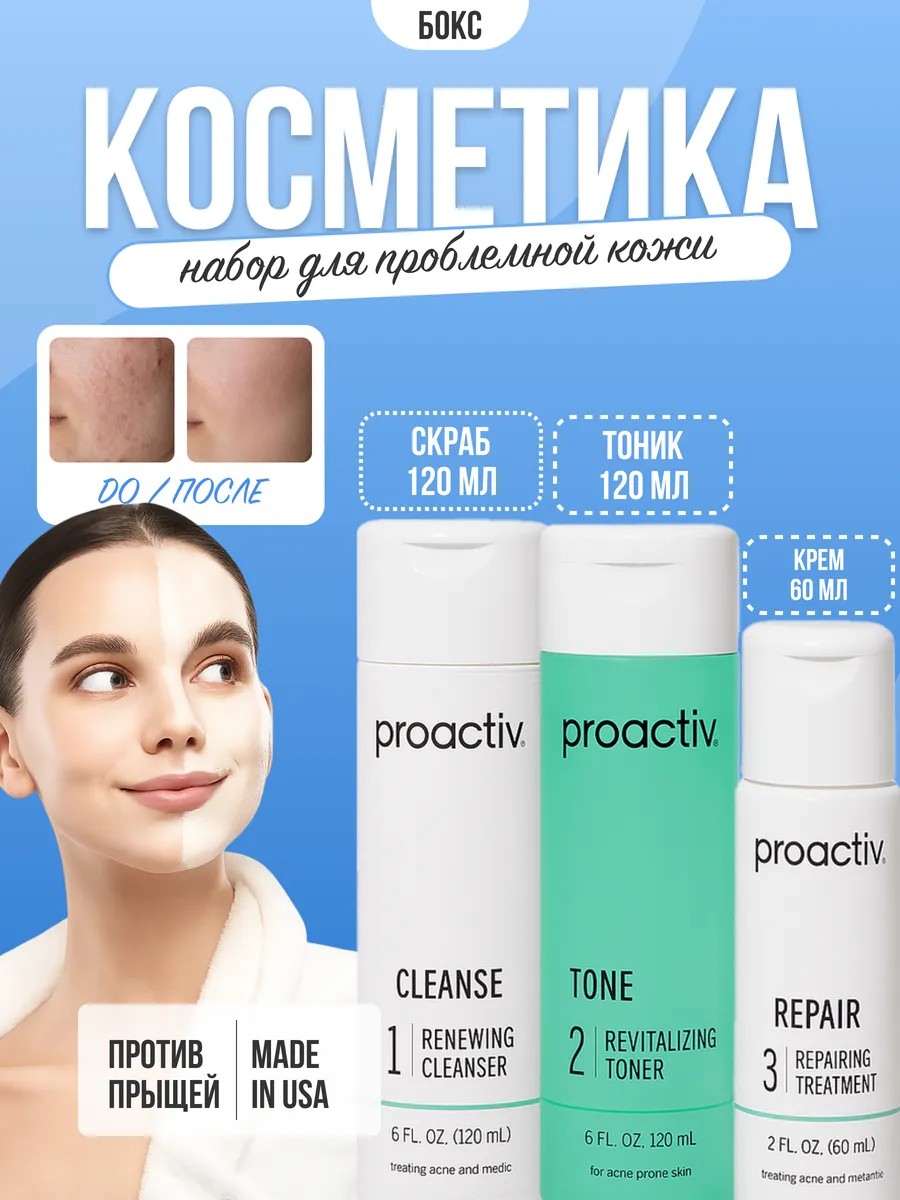 Набор Proactiv Solution — это оригинальная трехэтапная система №1 в США, которая помогает бороться и предотвращать появление прыщей на жирной или комбинированной коже.
