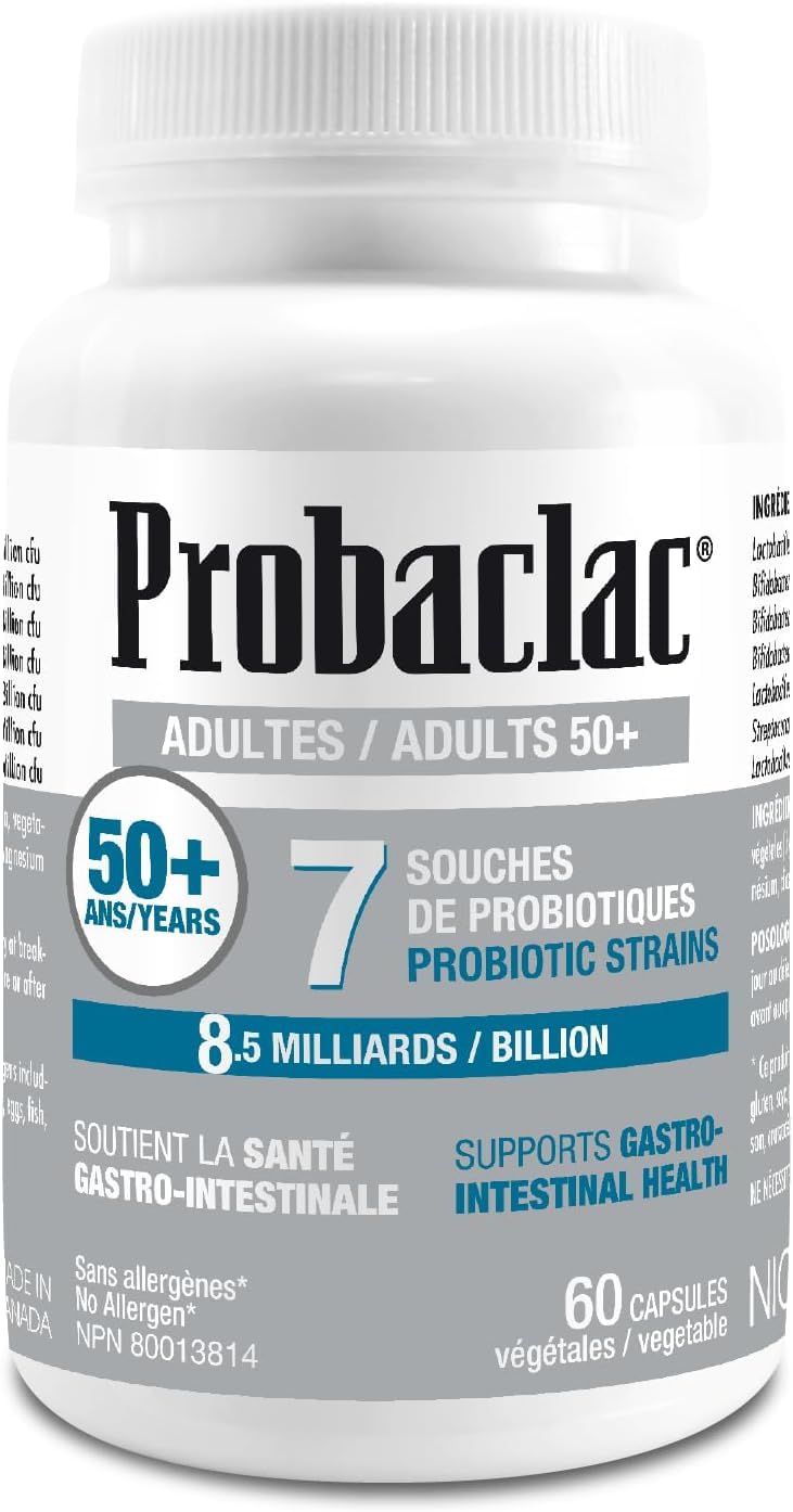 Probaclac Probiotics for 50+. It Help Support gastrointestinal Health and Bloating Relief and Contribute to a Natural Healthy Intestinal Flora.7strains of probiotic and lactic Ferment Complex. (60)