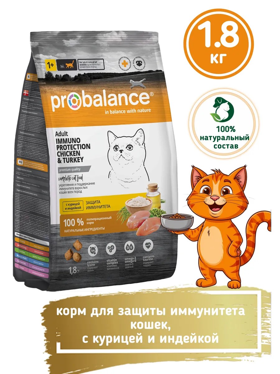 ProBalance Корм сухой для кошек для иммунитета Immuno индейка 1.8кг