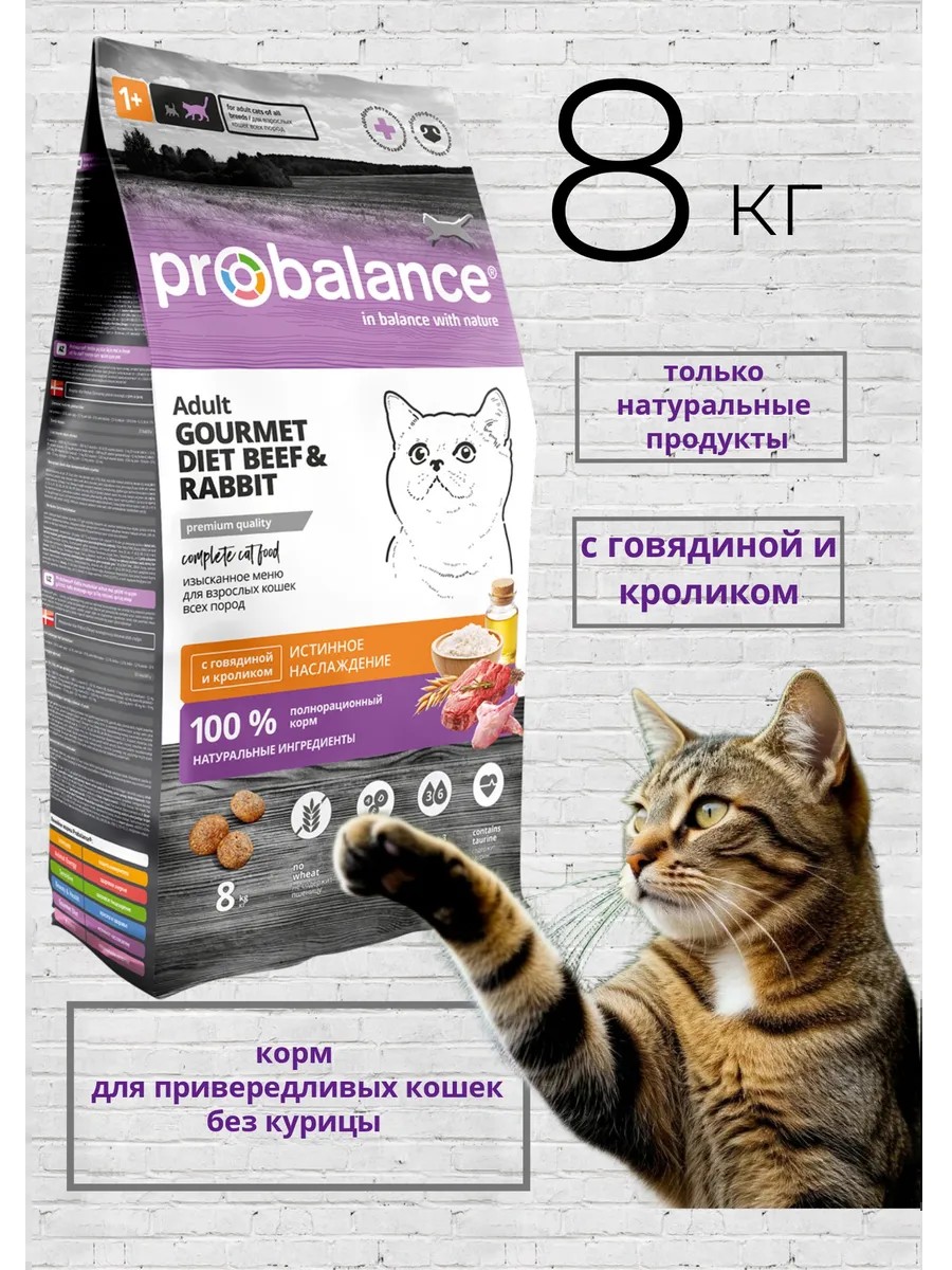 ProBalance Корм сухой для кошек Gourmet Diet говядина-кролик 8 кг