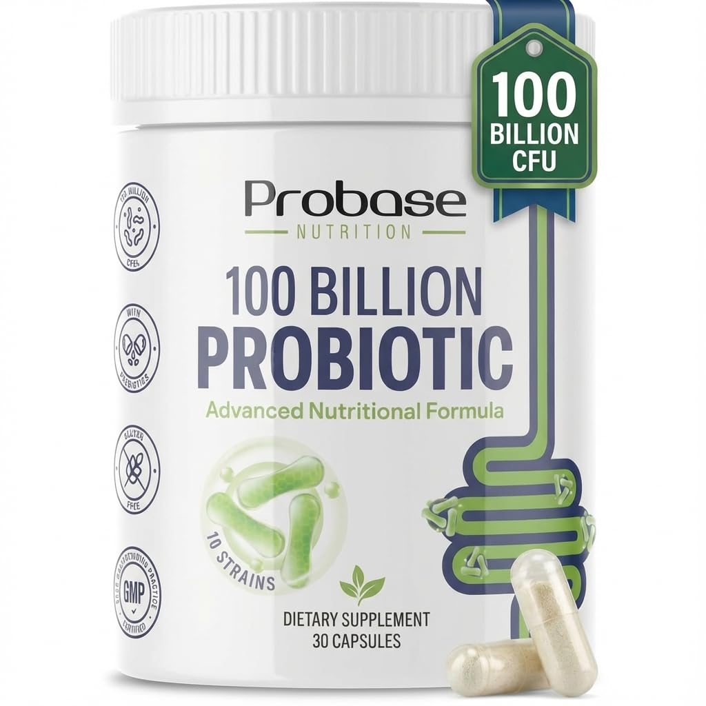 Probase Nutrition Probiotic 100 Billion CFU 10 Strains with Prebiotics 30 Veggie Capsules Gluten Free for Men and Women 30-Day Supply
