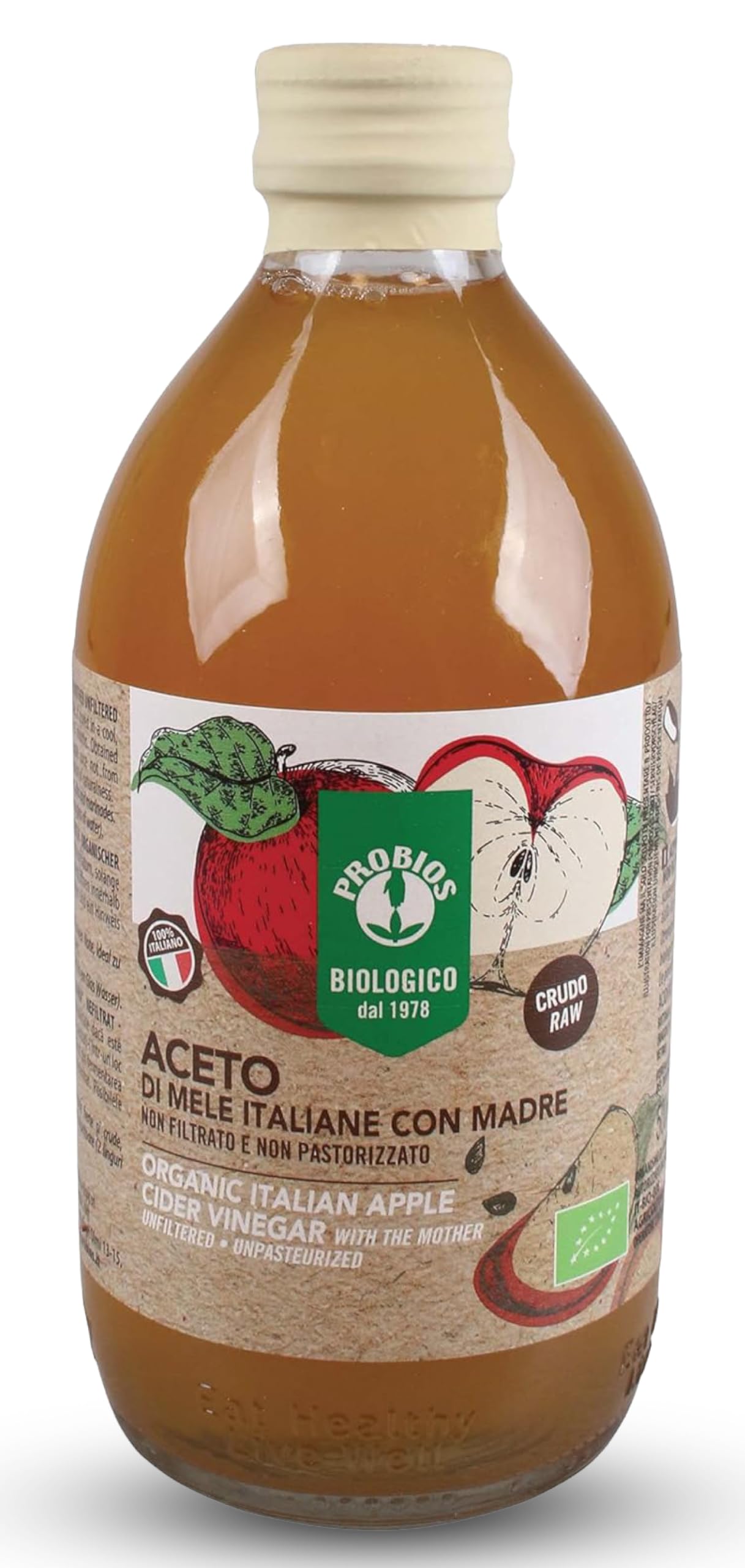 Experience the natural goodness of Probios Organic Unpasteurized Apple Cider Vinegar, made with organically grown apples using a traditional fermentation process. This unfiltered vinegar retains its natural elements, giving it a cloudy appearance and enhancing its depth of flavor, making it a great addition to a variety of recipes. It blends perfectly with salad dressings, adds richness to marinades, and complements cooked dishes with its unique acidity. Whether used for flavoring or as a secret ingredient in culinary creations, it delivers a well-balanced taste that pairs beautifully with both fresh and cooked foods. In addition to its culinary uses, many enjoy this mother apple cider vinegar as a light and refreshing beverage when diluted with water. Its fresh and natural profile makes it a great choice for those seeking simple, wholesome ingredients in their daily routine. Free from artificial preservatives and processing, it remains an authentic and unaltered option for those who prefer naturally made products. Its carefully designed packaging ensures lasting quality and flavor, making it a valuable addition to any kitchen. Whether you're experimenting with new recipes or looking for a naturally produced vinegar, our unfiltered apple cider vinegar delivers an exceptional experience every time. INGREDIENTS Apple cider vinegar DIRECTIONS Use apple cider vinegar for cooking, dressing salads, or as a refreshing beverage. For cooking, add to sauces and marinades. For seasoning, drizzle over fresh or cooked vegetables. As a beverage, dilute two tablespoons in a glass of water. See moreJNHCD Probios Vinaigre de cidre de pomme italien avec mère bio - Pack de 500 mlDESCRIPTION DU PRODUIT DESCRIPTION DU PRODUIT Essayez la bonté naturelle du vinaigre de pomme bio non pasteurisé Probios, produit avec des pommes cultivées biologiquement par un processus de fermentation traditionnel. Ce vinaigre non filtré conserve ses éléments naturels ce qui lui donne un aspect trouble et exalte sa profondeur de saveur, ce qui en fait un excellent ajout à diverses recettes. Il se fond parfaitement avec les vinaigrettes à salade, exalte la richesse des marinades et complète les plats cuisinés avec son acidité unique. Qu'il soit utilisé pour parfumer ou comme ingrédient secret dans les créations culinaires, il apporte un goût bien équilibré qui s'associe magnifiquement aussi bien aux aliments frais que aux aliments cuits. En plus de son utilisation en cuisine, beaucoup apprécient ce vinaigre de pomme mère comme boisson légère et rafraîchissante s'il est dilué avec de l'eau. Son profil frais et naturel en fait un excellent choix pour ceux qui recherchent des ingrédients simples et bons dans leur routine quotidienne. Sans conservateurs artificiels ni traitements, il reste une option authentique et inaltérée pour ceux qui préfèrent des produits fabriqués de manière naturelle. Son emballage soigneusement conçu assure une qualité et un goût durable, ce qui en fait un ajout précieux à toute cuisine. Que vous expérimentez de nouvelles recettes ou que vous cherchiez un vinaigre produit naturellement, notre vinaigre de pomme mère non filtré offre une expérience exceptionnelle à chaque utilisation. INGRÉDIENTS Vinaigre cidre de pomme MODE D'EMPLOI Utilisez du vinaigre de pomme pour cuisiner, assaisonner des salades ou comme boisson rafraîchissante. Pour cuisiner, ajouter aux sauces et marinades. Pour assaisonnement, versez sur des légumes frais ou cuits. En tant que boisson, diluez deux cuillères à soupe dans un verre d'eau. Voir plus