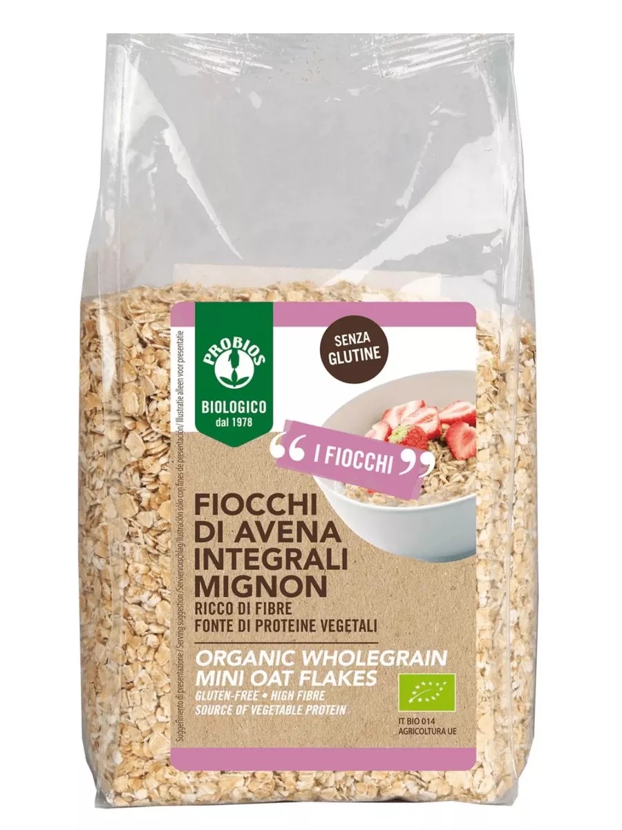 Mini oat flakes from Probios, made in Italy, are a delicious and healthy breakfast option. This whole grain porridge, made from naturally steamed grains without added gluten, is not only easy to digest but also offers a variety of uses. It contains only 100% natural Italian ingredients, free of dyes and flavors. Key features of our eco-friendly, preservative-free product include: Organic, Gluten-Free, Whole Grains, and Suitable for Vegetarians and Vegans. Instant oatmeal is a necessary part of every family's diet, so include it in your grocery list. Its nutritional properties provide long-lasting satiety and energy throughout the day. No-cook breakfast cereals are ideal for quick, healthy breakfasts. Dietary bran is an excellent vegan weight-loss aid, boosting metabolism and promoting a slim figure. These low-calorie, multigrain breakfast cereals help maintain a healthy weight while also supporting fitness and have a low glycemic index. Sugar- and lactose-free products contain numerous vitamins and minerals, which are absorbed through amino acids and fiber, making them an excellent traditional breakfast and a detoxifier. They are indispensable for those with diagnosed celiac disease and dieters, as well as for gastritis, acute or chronic gastrointestinal diseases, and cardiovascular issues. They also serve as a pancreatic formula, a dietary supplement, and a breakfast for the gut and microbiota. These baby cereals are rich in protein and vegetable fats and are an excellent source of slow-digesting carbohydrates. These cereals will provide a long-lasting energy boost and a feeling of fullness. Breakfast cereals, muesli, and cereals for children should contain amino acids and dietary fiber, which are found in our baby porridge and contribute to protein synthesis, muscle building, and the formation of protective antibodies. They will make mornings a favorite time for your little one. Gluten-free products are especially essential for children during their period of active growth. Baby porridge is prepared in the same way as for adults. This way, parents ensure the full nutritional value of their healthy diet and that of their child. They are very tender and quick to prepare – just a minute and you have a delicious treat: simply add 4 heaping tablespoons of oatmeal (about 50 g) to a bowl and pour in 125 ml of boiling water or milk, let it steep for 2 minutes, and it's ready! Don't be afraid to experiment: oatmeal goes well with fruit, red berries, dried raspberries, coconut flakes, avocado, or anything else you like. You can even make an energy drink or a vitamin-packed berry smoothie in a glass. With Probios, you'll have a delicious, ready-to-eat breakfast and a healthy menu – say "Good Morning!" to the new day! Enjoy your meal!