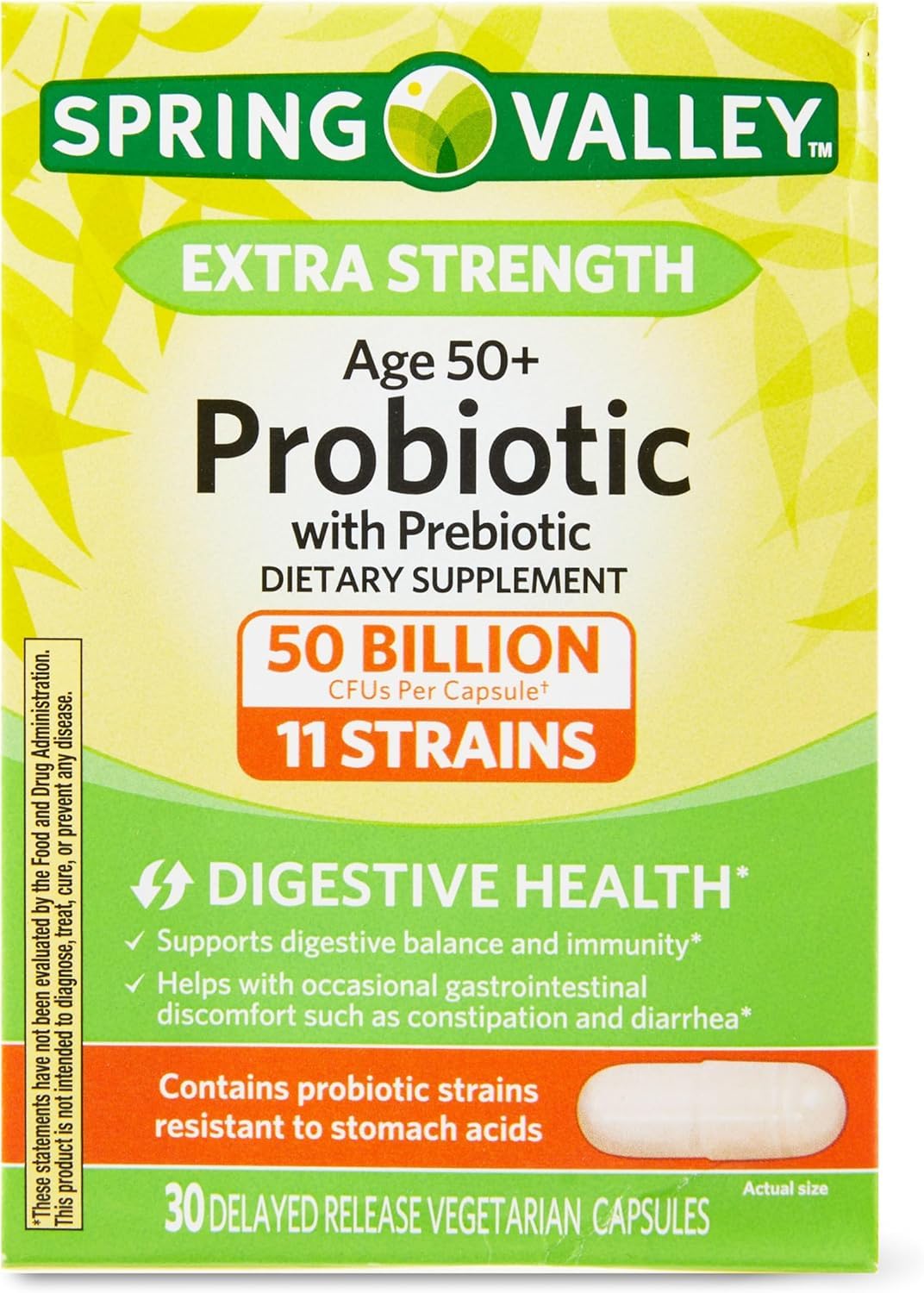 Probiotic | Age 50+ | 50 Billion CFU 11 Strains 30 Capsules | Daily Probiotic Supplement | for Adults 50+ | Spring Valley + Vsl Sticker