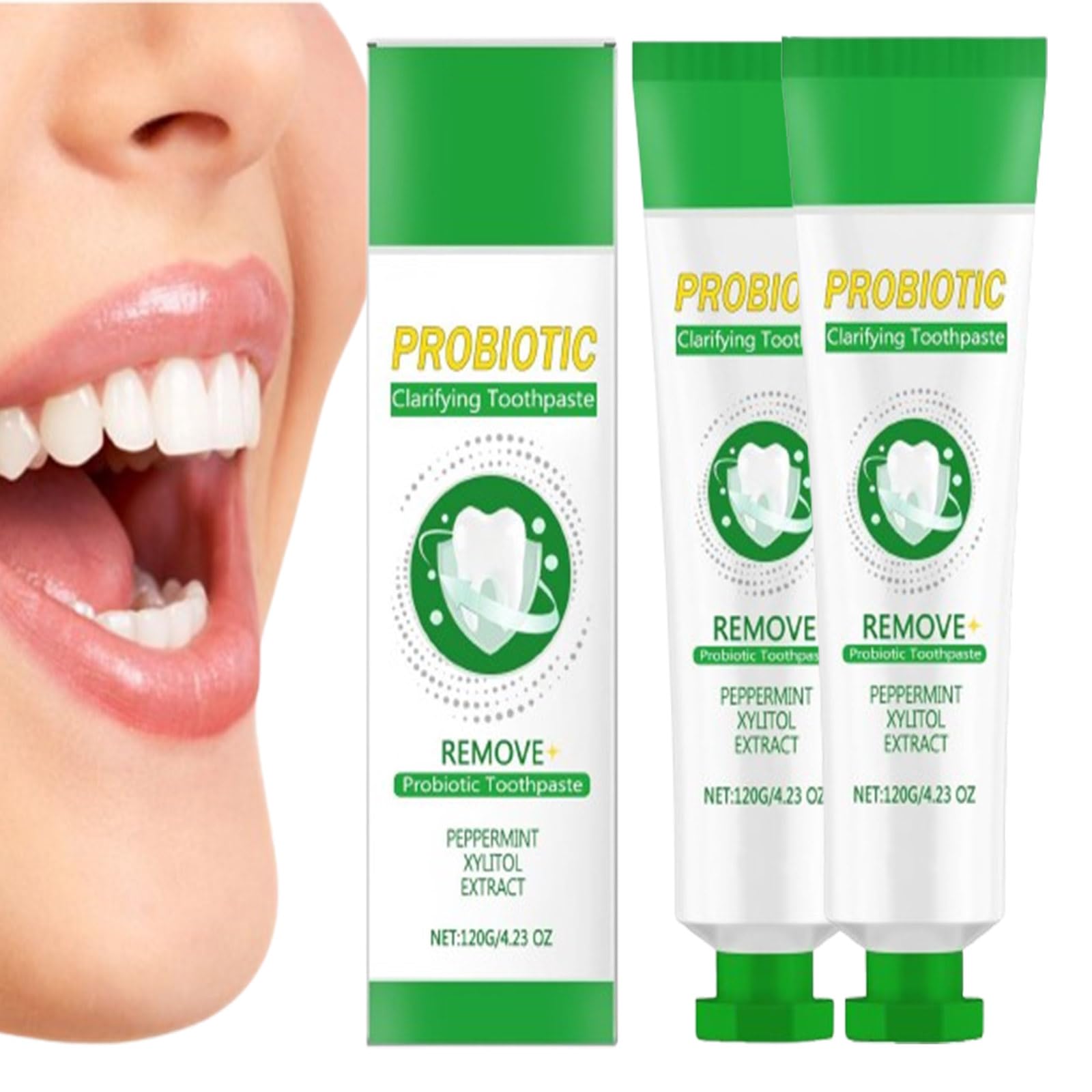 Probiotic Clarifying Toothpaste Whether you want to whiten your teeth, strengthen your tooth enamel or improve gum health, Probiotic Clarifying Toothpaste is the perfect solutionD. NATURAL WHITENING Our Probiotic Toothpaste Whitening contains a unique blend of six probiotics to promote a balanced oral microbiome, leaving your teeth visibly whiter. GENTLE INGREDIENTS Our Probiotic Whitening Toothpaste is made with gentle, natural ingredients, whitens teeth while strengthening tooth enamel, enjoy fresh breath all day. PROBIOTIC CLARIFYING TOOTHPASTE Experience noticeable teeth whitening with the new upgrades Probiotic Toothpaste, effectively targets surface stains.