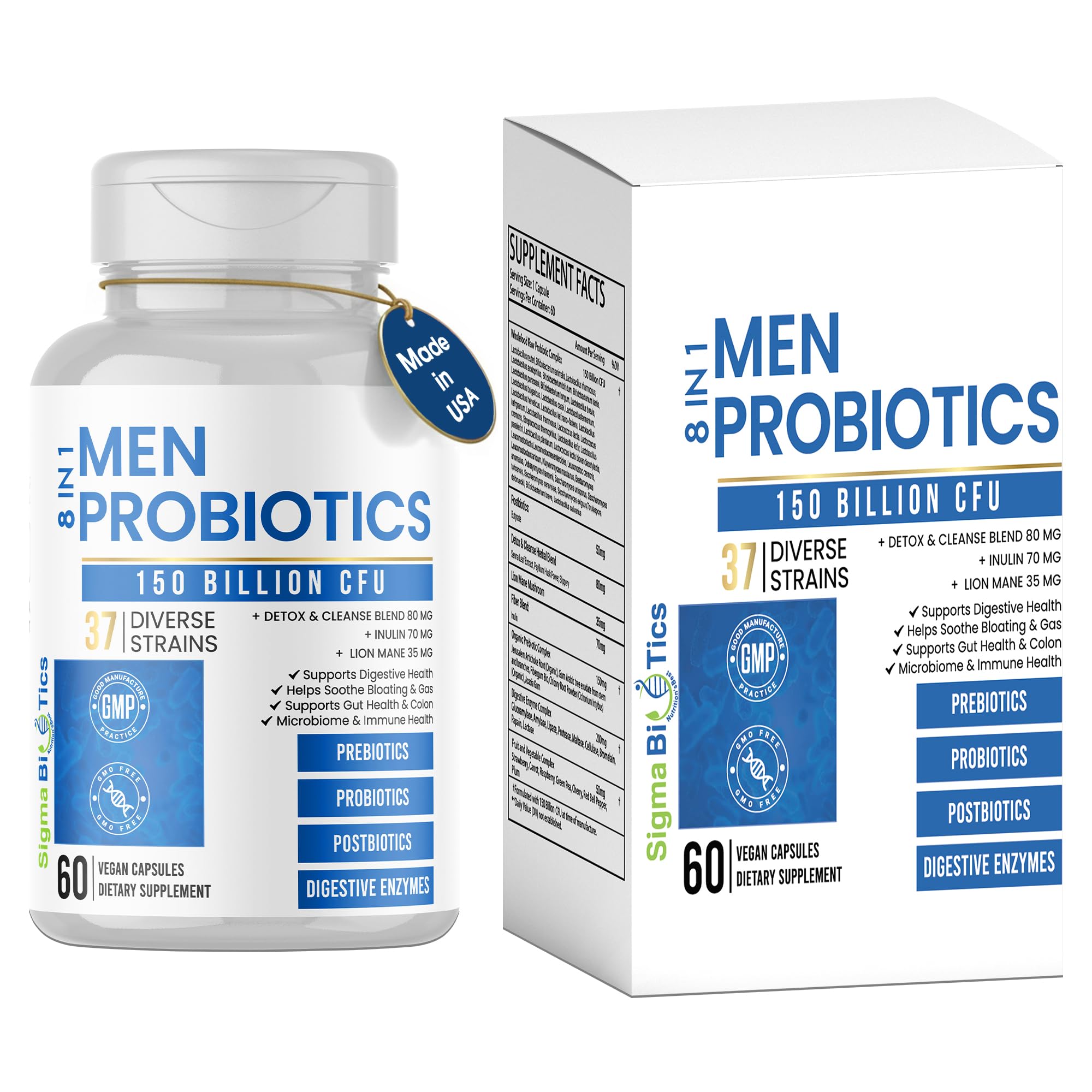 Probiotics for Men - 150 Billion CFU Acidophilus Capsules with Prebiotics & Postbiotics - Supports Gut Microbiome Colon & Immune Health - 37 Strains with Digestive Enzymes - 60 Vegan Capsules