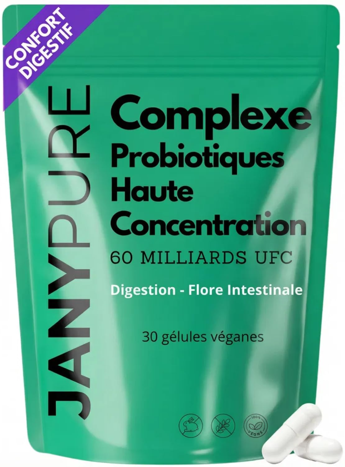 Probiotique Flore Intestinale 60 Milliards UFC - Complexe Souches Multiples & Pr biotiques Magn sium Silicium - Digestion Ventre Plat Detox Immunit Humeur - G lules V ganes - Cure 1 Mois