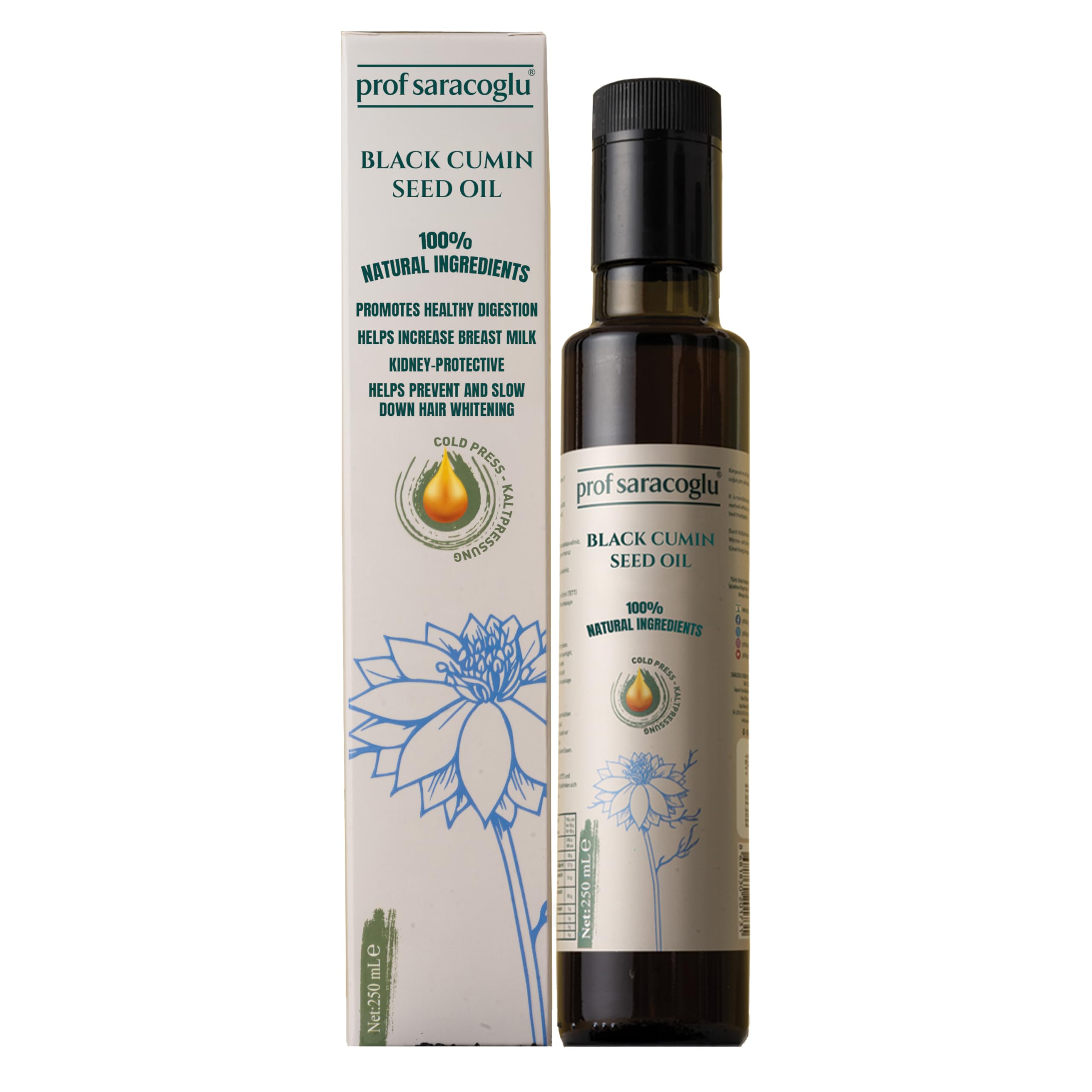 CONVENIENT PROTECTIVE PACKAGING: Our unrefined, cold-pressed black seed oil liquid comes in a leak-resistant 8.45 fl oz dark amber glass bottle to shield against light and preserve freshness. The drip-friendly spout ensures precise dispensing, making it ideal for kitchen shelves. CONVENIENT PROTECTIVE PACKAGING: Our unrefined, cold-pressed black seed oil liquid comes in a leak-resistant 8.45 fl oz dark amber glass bottle to shield against light and preserve freshness. The drip-friendly spout ensures precise dispensing, making it ideal for kitchen shelves. DEEP NOURISHMENT FOR HAIR SKIN: This cold-pressed black seed oil is your go-to natural solution for nourishing both hair and skin. Our pure blackseed oil penetrates deeply to help hair look fuller and skin feel soft. Rich in essential fatty acids and antioxidants, it helps lock in moisture, tame frizz, and revitalize your daily beauty routine. VERSATILE CULINARY SUPERFOOD: Discover the nutty, aromatic flavor of our raw nigella sativa black seed oil. Add Prof Saracoglu blackseed oil to salads, dressings, smoothies and marinades for a gourmet twist. This black seed oil enhances simple recipes with a rich flavor , making everyday meals more nutritious. UNMATCHED QUALITY: Prof Saracoglu Black Cumin Seed Oil is crafted from high quality Nigella sativa seeds using a gentle, cold-pressed extraction with zero additives or heat. This black cumin oil delivers a smooth, rich flavor and the authentic profile of pure black seed oil for versatile daily use.