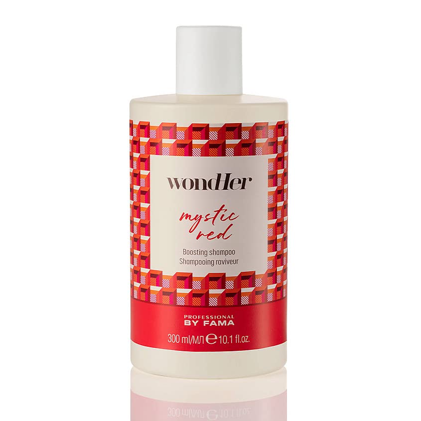 Professional By Fama is an Italian brand with a collection of professional hair care products. A shampoo with pomegranate extract has been developed specifically for copper and red highlights. It prevents color saturation loss, gives curls shine, firmness, and softness, and guarantees complete care. Professional By Fama Wonder Mystic Red Boosting Shampoo Features: - Has a gentle cleansing formula with sealing polymers - Prevents pigment from washing out and preserves color intensity - Contains pomegranate extract, which has moisturizing, regenerating, softening, vitamin-enriching, and antioxidant properties - Smoothes strands and increases their elasticity - Ensures a pleasant feeling of freshness - Gives shine. Application Method: Apply to wet hair, massage, and rinse. Repeat if necessary. INSTRUCTIONS FOR USE Apply to wet hair, massage, and rinse. Repeat if necessary.- Provides a pleasant feeling of freshness - Smoothes the strands, increases their elasticity - Contains pomegranate extract, which has moisturizing, regenerating, softening, vitamin-enriching and antioxidant properties - Prevents pigment from washing out and maintains the intensity of the shade - Features a gentle cleansing formula with sealing polymers.Professional By Fama Shampoing Wondher Mystic Red Boosting 300 ml qui préserve les tons de cheveux rougesDESCRIPTION DU PRODUIT DESCRIPTION DU PRODUIT Professional By Fama est une marque italienne avec une collection de produits de soins capillaires professionnels. Un shampooing à l'extrait de grenade a été développé spécialement pour les mèches de cuivre et de rouge. Il empêche la perte de saturation des couleurs des boucles, leur donne brillance, fermeté et douceur, garantit un soin complet. Professional By Fama Wondher Mystic Red Boosting Shampooing Caractéristiques : - Dispose d'une formule nettoyante douce avec des polymères scellants - Ne laisse pas le pigment se laver et conserve l'intensité de la teinte - Contient de l'extrait de grenade qui a des propriétés hydratantes, régénérantes, adoucissantes, vitaminisantes et antioxydantes - Lisse les mèches, augmente leur élasticité - Assure une fraîcheur agréable. sentiment - donne Brillant. Méthode d'application Appliquer sur cheveux humides, masser et rincer. Répétez si nécessaire. MODE D'EMPLOI Appliquer sur cheveux humides, masser et rincer. Répétez si nécessaire.- procure une agréable sensation de fraîcheur . - lisse les brins, augmente leur élasticité . - contient de l'extrait de grenade, qui a des propriétés hydratantes, régénérantes, adoucissantes, vitaminisantes et antioxydantes . - ne permet pas au pigment de se laver et maintient l'intensité de la nuance . - Dispose d'une formule nettoyante douce avec des polymères scellants.
