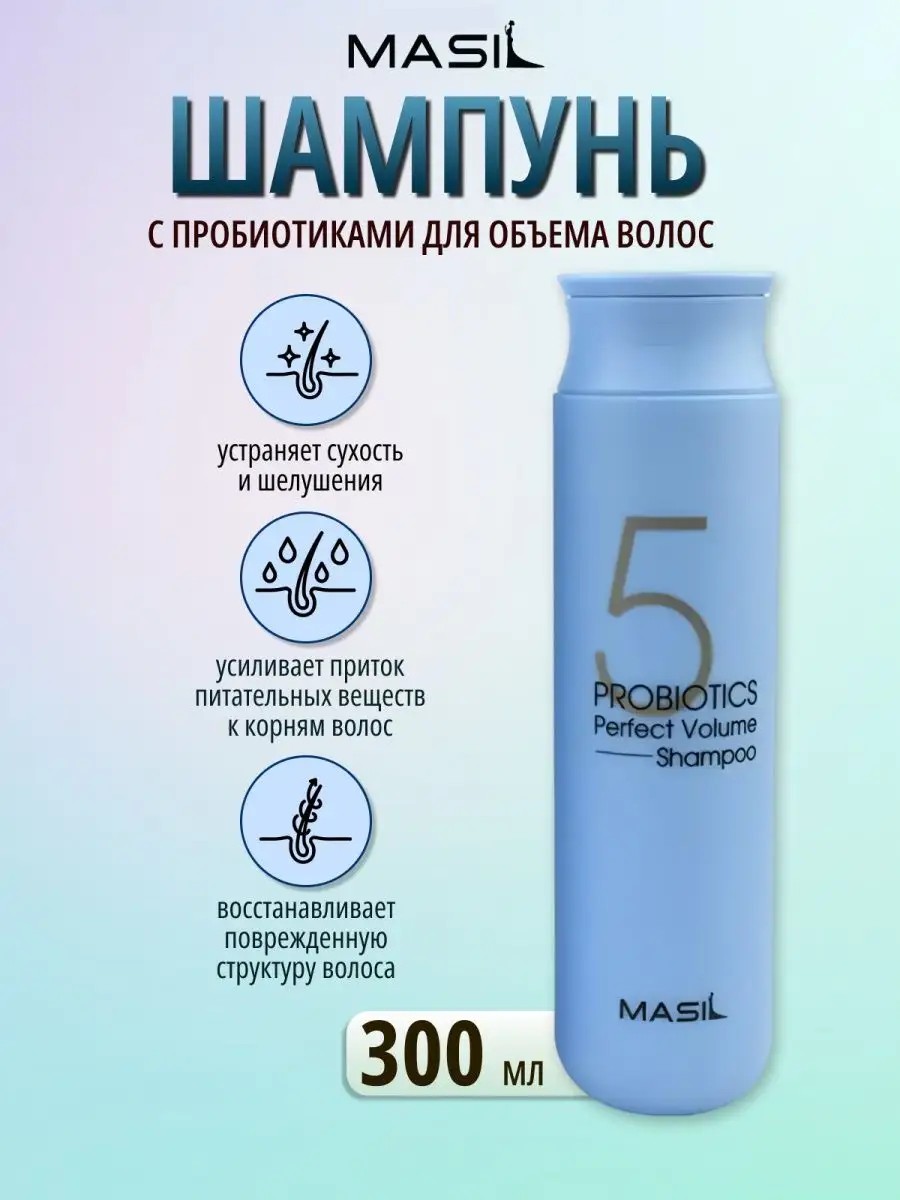 Серия шампуней для волос Masil - это Профессиональная оригинальная корейская косметика для волос с разным направленным и действием. Корейский Шампунь для объема волос MASIL 300 мл с пробиотиками отлично справляется с увеличением объёма волос .Шампунь укрепляет защитный слой и повышает барьерные функции клеток, способствуя удержанию влаги. Шампунь для волос Устраняет сухость и шелушения, оздоравливает микробиом кожи, усиливает приток питательных веществ к корням волос. Восстанавливает поврежденную структуру волоса, возвращает естественный объем, разглаживает кератиновые чешуйки.