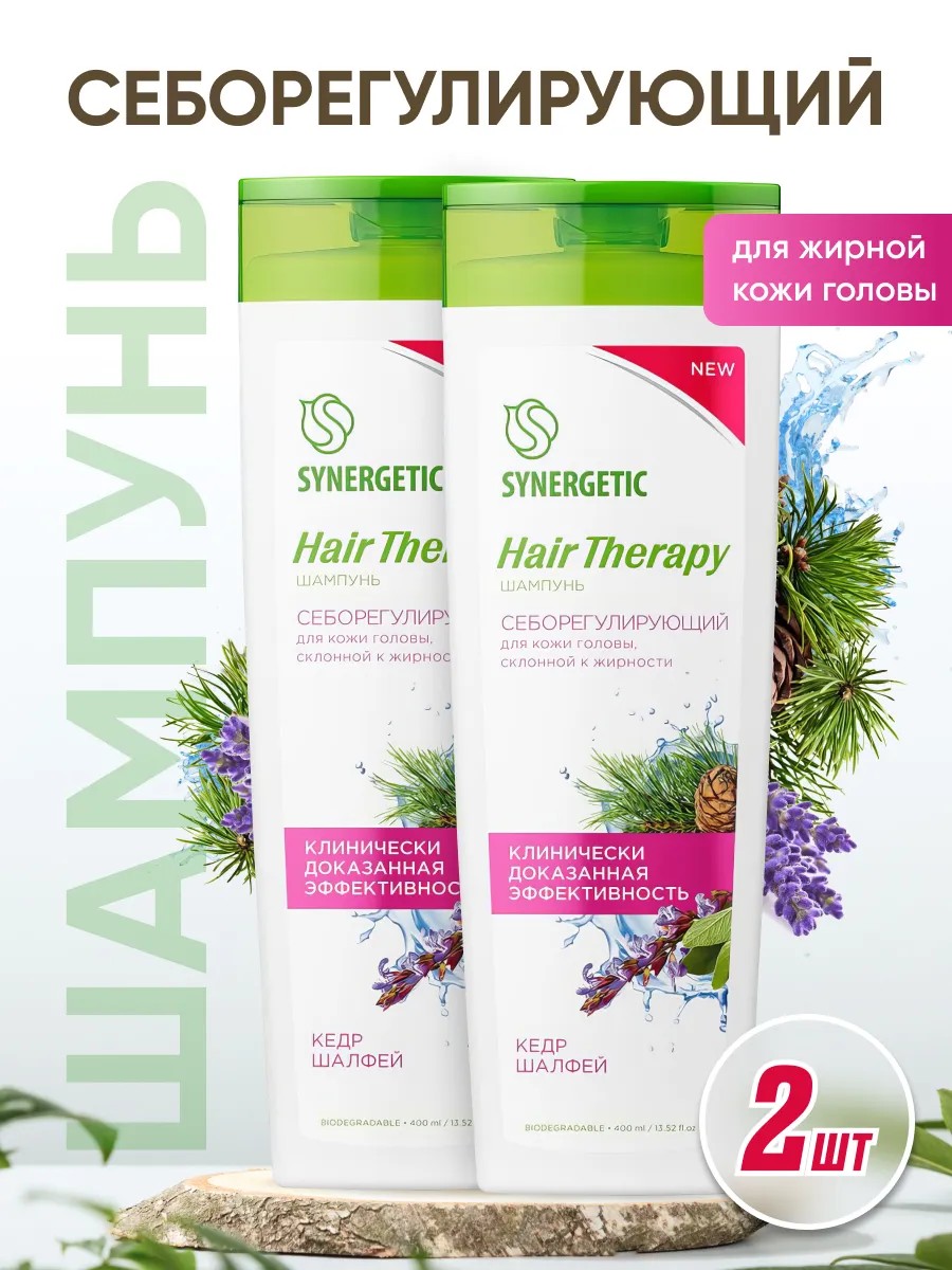 Шампунь для волос SYNERGETIC HAIR THERAPY Себорегулирующий - 2 штуки набор.
