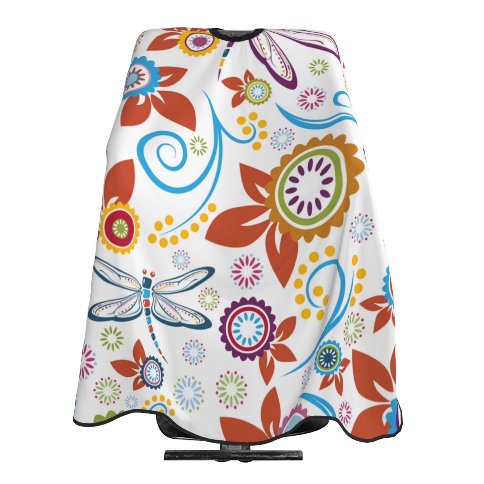 Professional Haircut Cape,Dragonfly And Floral Pattern Hairdressing Salon Cape with Adjustable Snap Closure Hairdresser Apron