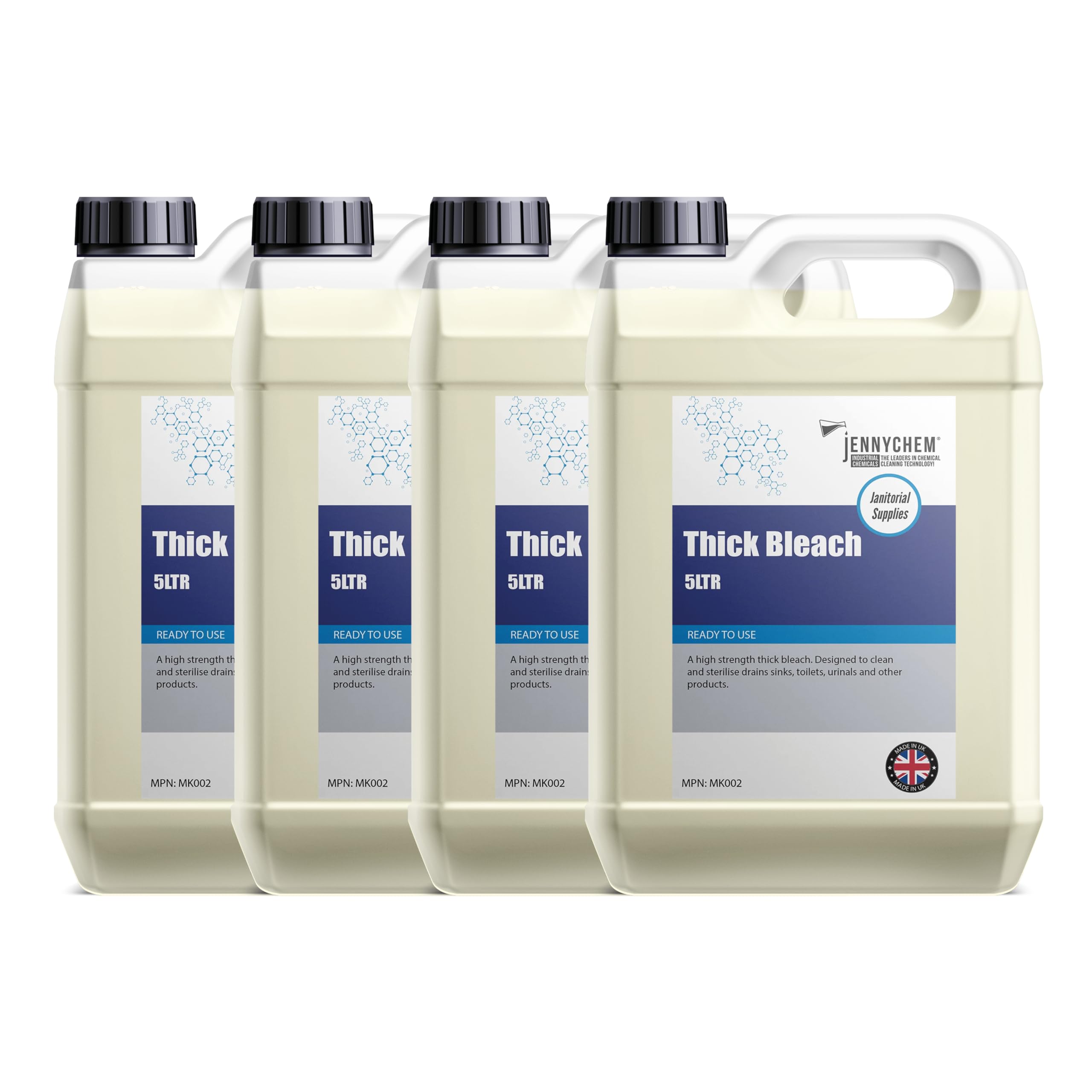 JennyChem Professional Thick Bleach Toilet Cleaner: Our thick toilet cleaner liquid is a specially formulated cleaning solution to handle the most challenging cleaning tasks for a spotless household. Experience the delightful scent of cleanliness with after every use of our toilet smell eliminator. The super-thick formula of our strong toilet cleaner not only ensures a thorough cleanse but also leaves behind a refreshing fragrance that will make your space smell good. With its remarkable ability to cling onto surfaces, our toilet cleaner bleach ensures reliable and efficient cleaning results. This toilet bowl cleaner helps eliminate all lingering harmful microorganisms, leaving your surfaces sterile and pristine. Also, bid farewell to stubborn marks and discolorations that mar your surfaces with our bathroom cleaning products. Our high-strength multipurpose cleaner is the perfect companion for tackling stains and cleaning drains, urinals, and various other surfaces and products throughout your home. Make this multi purpose cleaner your go-to solution for a healthier living space. --- About Us: Jennychem, is a brand trusted by thousands of businesses and car aficionados in the UK. We are leaders in chemical cleaning technology with products formulated and engineered to make your DIY car detailing easy and effective.