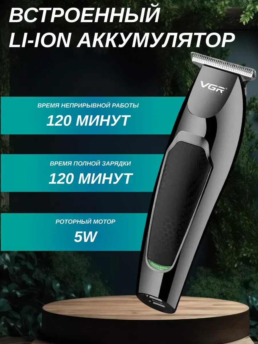 Корпус машинки выполнен из ударопрочного пластика, что гарантирует долговечность и надежность в использовании. Т-образное лезвие изготовлено из высококачественной нержавеющей стали, обеспечивая аккуратный срез и минимальные раздражения на коже. Увеличенное время автономной работы позволяет использовать машинку до 120 минут без подзарядки, что делает её удобной для путешествий и поездок.