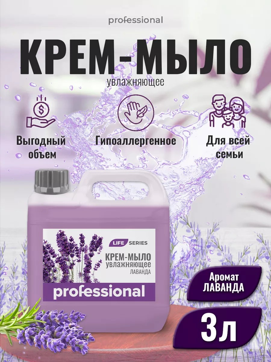 Жидкое крем-мыло 3литра для рук и тела увлажняющее и гипоаллергенное с ароматом Лаванды. Косметическое жидкое мыло подходит для ежедневного применения, легко удаляет загрязнения, не вызывает сухости и раздражения. Благодаря входящим в состав смягчающим компонентам обеспечивает увлажняющий эффект, сохраняя защитные функции кожи тела и рук. Жидкое средство обладает приятным запахом, что позволяет наслаждаться каждым умыванием. Оно не вызывает раздражения, не сушит и не стягивает кожу, а наоборот снимает его, питая и увлажняя кожу. При использовании мыла образуется нежная пена, которая бережно очищает ваши руки. Также наличие хорошей пены позволяет назвать средство экономным за счет небольшого расхода. Жидкое мыло-крем можно использовать на даче, в офисе, в медицинских, в образовательных учреждениях, общественном туалете и др. местах. Обладает хорошим моющим и очищающим эффектом, экономично в использовании. Отлично подходит, как для формирования запасов дома, так и для организаций. Ароматное экологическое жидкое мыло Professional станет отличным вариантом на подарок для красоты и ухода, дополнив гель для душа и шампунь. В нашем ассортименте представлено 6 ароматов жидкого мыла для рук и тела: Алоэ Вера, Клубничный смузи, Персик, Лаванда, Океан и Молоко и мед. А так же представлен еще 1 абсолютно без каких-либо добавок для аллергиков: Натуральный жемчуг. Все жидкое мыло фасуется в канистру 3 литра, что очень удобно в хранении. Жидкое косметическое крем-мыло поставляется напрямую , благодаря чему Вы минуете всех ценовых посредников и получаете лучшую цену!