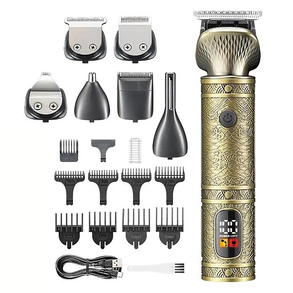 Specification Model : KM-2313 Power : 4.45 W Battery Type: 600 mAh lithium-ion Using Time : 90 minutes Charging Time : 80 minutes PackageList Clipper * 1 Limit Combs * 8 (1mm/3mm/5mm/7mm/3mm/6mm/9mm/12mm) Detail Trimmer * 1 Precision Trimmer * 1 Design Trimmer * 1 Nose Trimmer * 1 Shaver Trimmer * 1 Body Trimmer * 1 Hair Clipper * 1 Cleaning Brush * 1 USB Cable * 1 Manual * 1