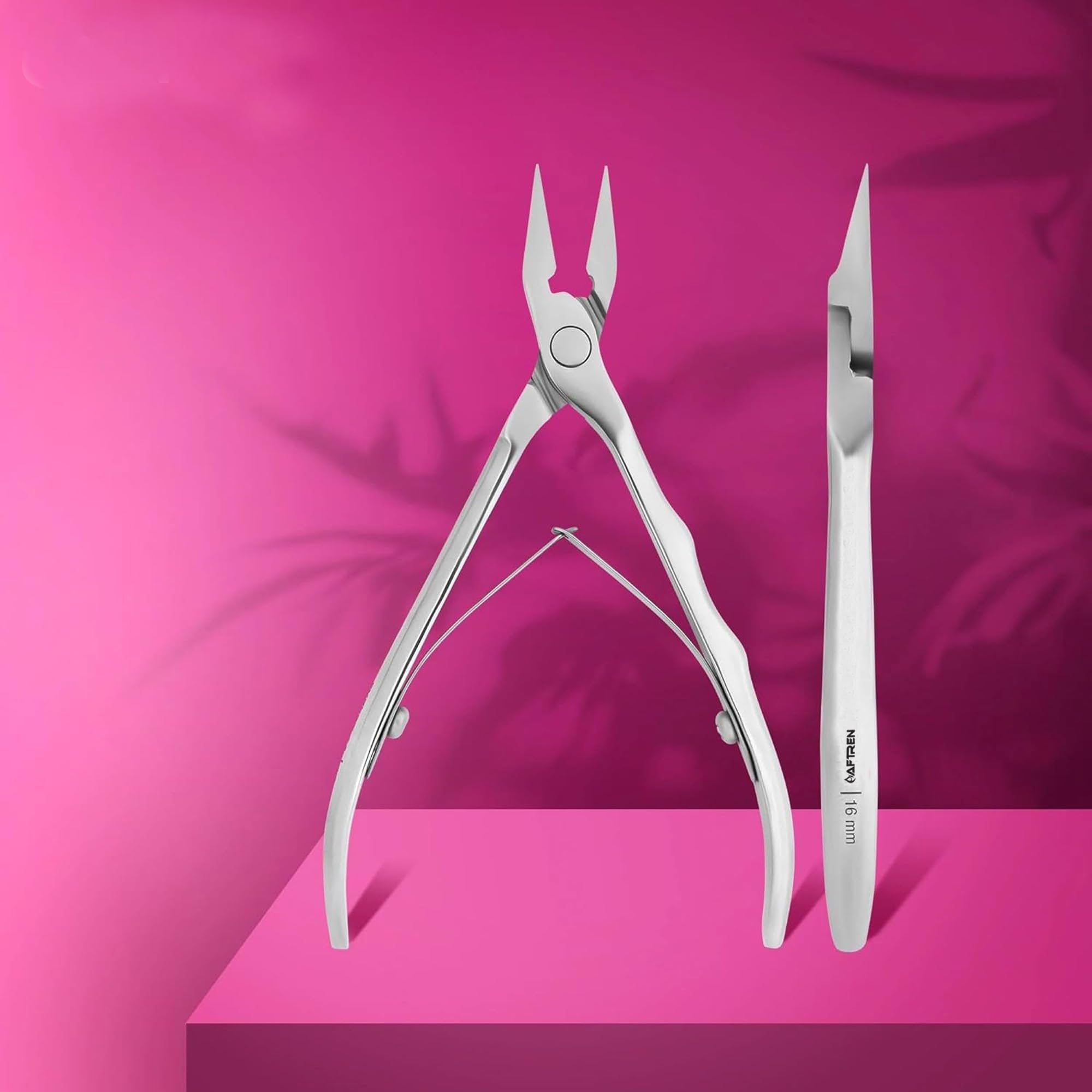 AFTREN- Smart 10, professional cuticle cutter with 3 mm blade. Hand orientation: AMBIDISTRIAL. Stainless steel. Extra protection against damage and corrosion. Suitable for disinfecting and sterilizing. Sterilizable (does not oxidize and has high resistance) Made in Europe. Material: J2 stainless steel anti-rust steel for surgical instruments Elongated handles for comfortable gripping and holding of the instrument in the hand thanks to soft finger grooves on the handle. Stronger dual plate spring provides smooth and consistent movement when open and closed. Safe and thin tip to avoid the risk of injury. Particularly narrow and thin 16 mm cutting edges. Hand Gesc Haerft diamond blade hand sharpened by highly qualified professional staff. Designed to work comfortably and thoroughly with ingrown toenails. Clean and precise cut with perfect sharpness thanks to professional edges. Better field of vision of the work surface. Long-lasting insert in which the individual 3 – 5 years without mushrooms nachschaer.
