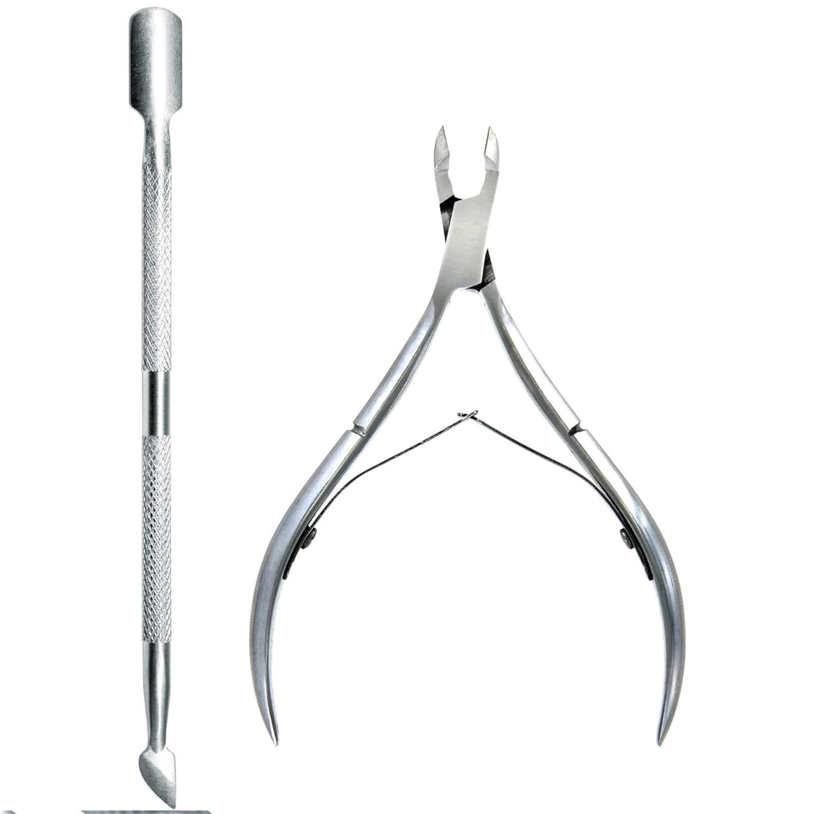Professional Stainless Steel Double End Cuticle Pusher + Cuticle Nippers Duo Professional Manicure Pedicure Nail Cleaner Gel Polish Remover Prep Cutters Remove Dead Skin