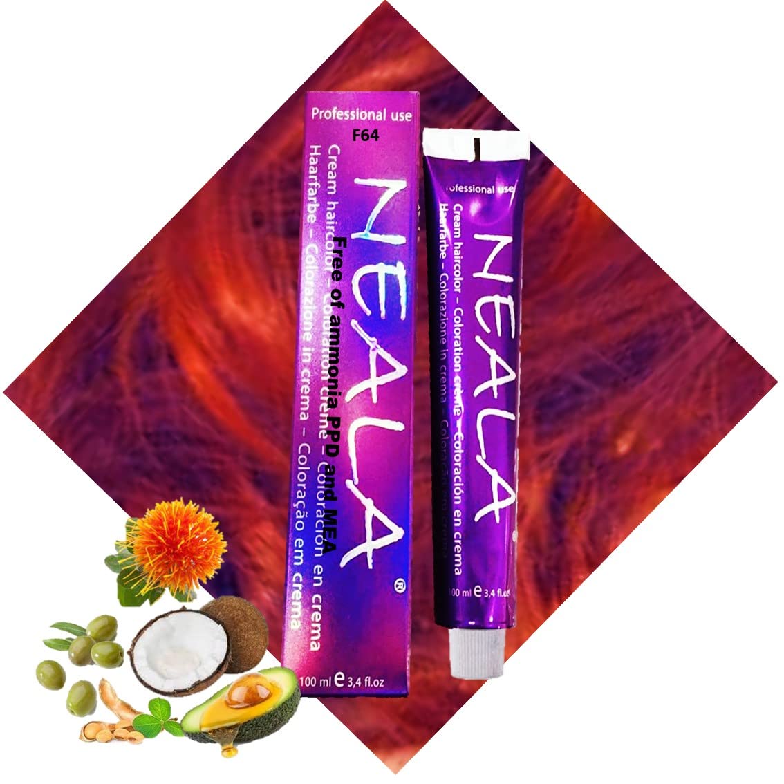 Professional Neala coloring without ammonia, PPDS-free and MEA-free.Due to its more natural components, it offers more care and respect for hair and helps your care, natural shine and pH value of the hair.This matierer is particularly suitable for intensifying the copper tone for dyes or the tinting of copper -doches after discoloration. Instructions Application: For the gray cover: Use dark shades under a color 6. Mix in a ratio of 1 color per 1 oxidizing agent with 20 volume, and leave it on for at least 35 minutes. for color bath: Mix in a ratio of 1 color with 2 oxidizing agents of 10 volume, and let it take 30 minutes for lightening of 1 to 3 natural hair tones: Use tones 10 or 12. Mix in ratio 1 color with 2Oxidizing agents 30 or 40 volume and let it take 40-45 minutes.Strengthens, feeds, rejuvenated and gives the hair shine.Permanent color-intensive finish tone and multi-reflecting shine.With natural antioxidant oils and empire of omega 9, proteins and vitamins A, B, E, F and K. Neala Professional hair color free of ammonia, free of PPDs and free of Mea.Thanks to its more natural components, it offers more care and respect for hair and helps its care, its natural shine and pH balance of hair.Pure color ideal for tinging down highlights.Leave your highlights in the desired color.Professionelle Neala-Färbung ohne Ammoniak, PPDS-frei und MEA-frei. Durch seine natürlicheren Bestandteile bietet es mehr Pflege und Respekt für das Haar und hilft Ihrer Pflege, natürlichen Glanz und pH-Wert des Haares. Dieser Mattierer eignet sich besonders zur Intensivierung des Kupfertons bei Farbstoffen oder zum Abtönen von Kupferdochten nach dem Verfärben. GEBRAUCHSANWEISUNG Anwendung: Für die Grauabdeckung: Verwenden Sie dunkle Farbtöne unter einem Farbton 6. Mischen Sie im Verhältnis 1 Farbe pro 1 Oxidationsmittel mit 20 Volumen, und lassen Sie es mindestens 35 Minuten einwirken. Für Farbbad: Mischen Sie im Verhältnis 1 Farbe mit 2 Oxidationsmitteln von 10 Volumen, und lassen Sie es 30 Minuten einwirken Für Aufhellung von 1 bis 3 Naturhaartönen: Verwenden Sie Töne 10 oder 12. Mischen Sie im Verhältnis 1 Farbe mit 2 Oxidationsmitteln 30 oder 40 Volumen und lassen Sie 40-45 Minuten einwirkenOxidationsmittel müssen separat gekauft werden. Stärkt, nährt, verjüngt und verleiht dem Haar Glanz. Permanenter farbintensiver Finish-Ton und multireflektierender Glanz. Mit natürlichen antioxidativen Ölen und reich an Omega 9, Proteinen und Vitaminen A, B, E, F und K. Neala professionelle Haarfarbe frei von Ammoniak, frei von PPDs und frei von MEA. Dank seiner natürlicheren Bestandteile bietet es mehr Pflege und Respekt für das Haar und hilft seiner Pflege, seinem natürlichen Glanz und dem PH-Gleichgewicht des Haares. Reine Farbe ideal zum Abtönen von Highlights. Lassen Sie Ihre Highlights in der gewünschten Farbe.Professioneller Schneebesen ohne Ammoniak und frei von PPD und MEA – F64 Kupferrot – Intensives Orange Spezial für Docht – NEALA 100 ml.