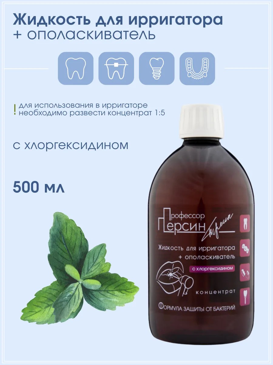 Professor Persin irrigator fluids, developed with the participation of MGMS (Moscow State University of Medicine and Dentistry named after A.I. Evdokimov), are unique in their composition. They are ideal for use with an irrigator as an effective means of cleaning interdental spaces and periodontal pockets, as well as a stand-alone mouth rinse.