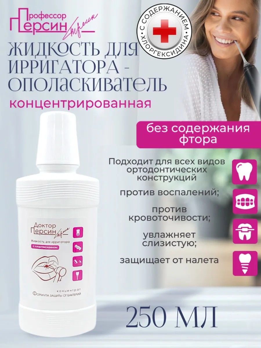 Жидкость для ирригатора с хлоргексидином Профессор Персин Формула защиты от бактерий. 250 мл.
